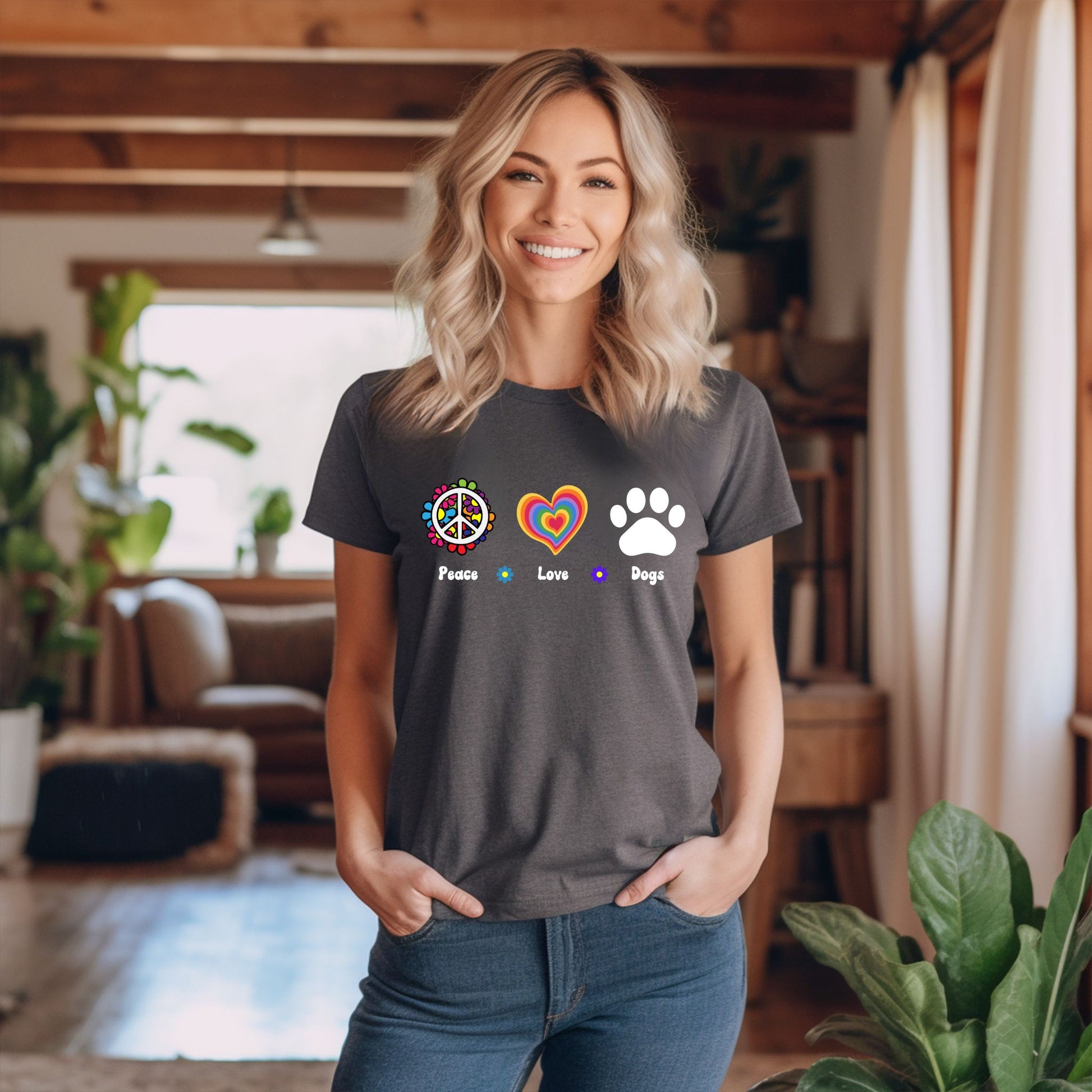Retro Tee, Peace Love Dogs Shirt, Dog Shirt, Dog Mom Shirt, Dog Owner Gift , Dog Lover Shirt, Vintage Shirt