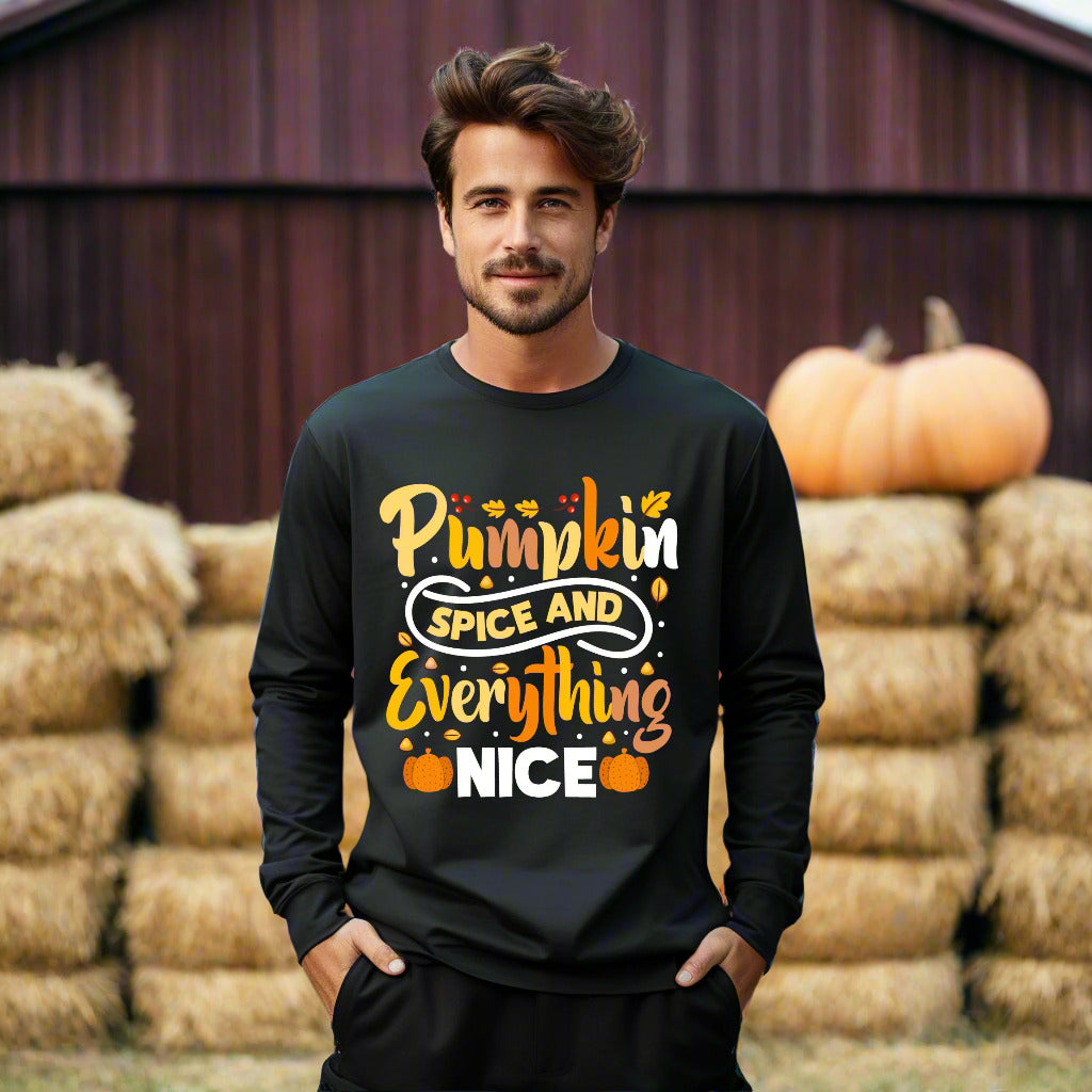 Pumpkin Spice and Everything Nice T-Shirt – Cute Fall Autumn Graphic Tee for Pumpkin Lovers Long Sleeve Tee