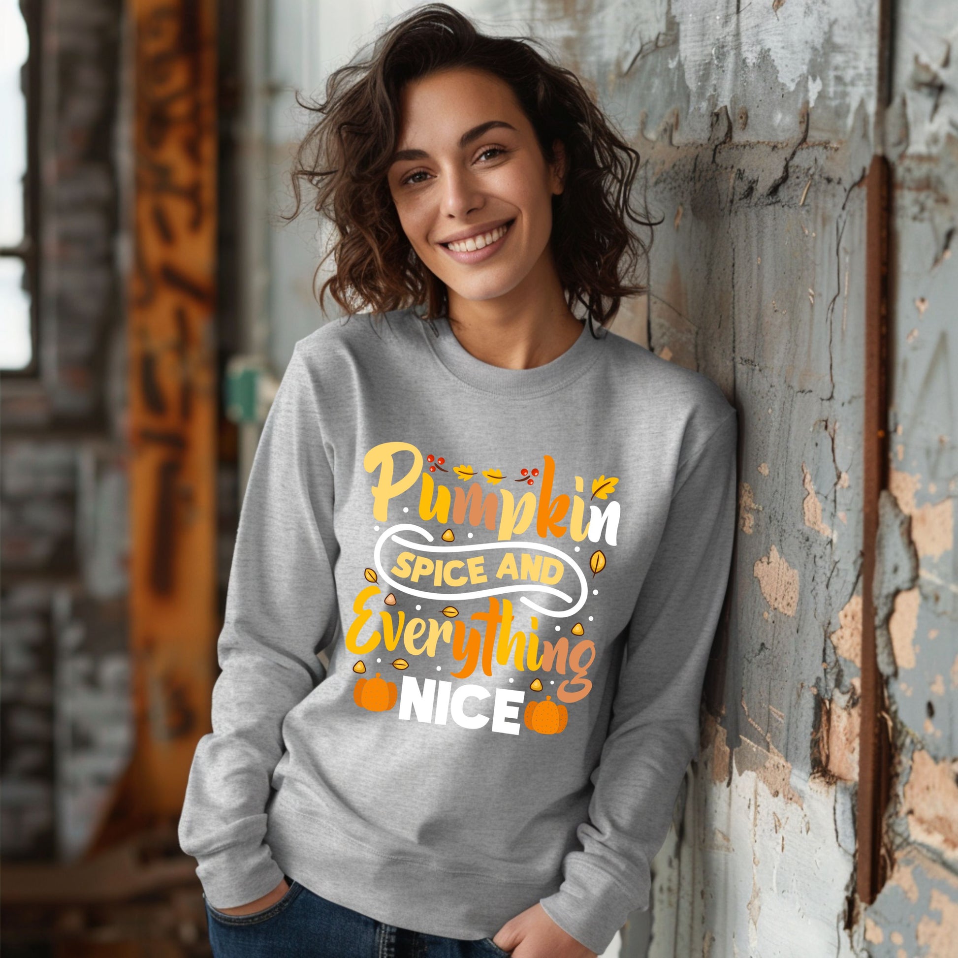 Celebrate the magic of autumn with our Pumpkin Spice and Everything Nice T-Shirt! Featuring vibrant fall colors, adorable pumpkins, autumn leaves, and playful typography, this cozy tee is perfect for pumpkin spice lovers and fall enthusiasts alike. Whether you're heading to the pumpkin patch, sipping your favorite latte, or just soaking in the crisp autumn air, this fall-themed t-shirt will add the perfect seasonal touch to your outfit. Makes a fun gift for coffee lovers, fall fans, and anyone who can’t get enough of pumpkin season!
