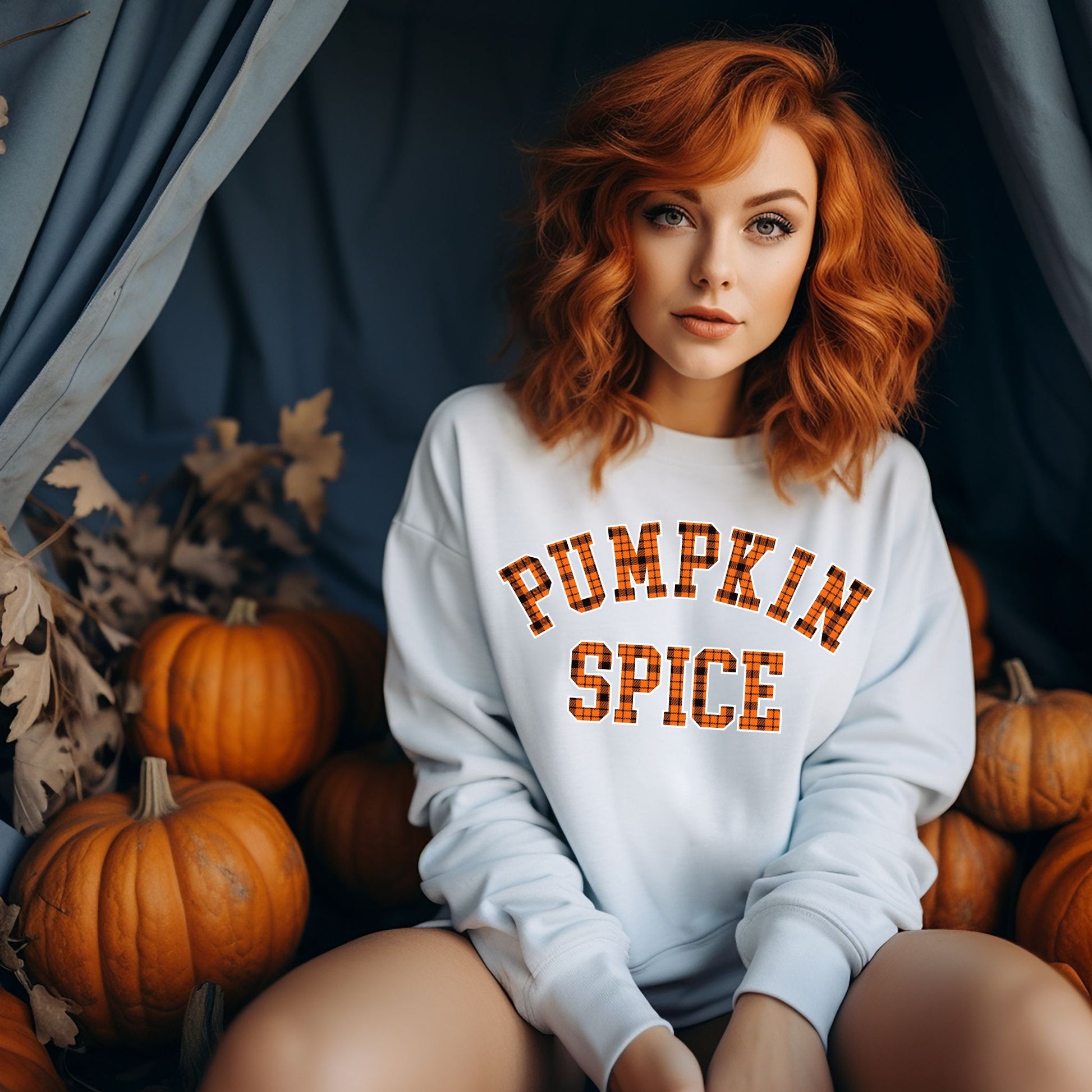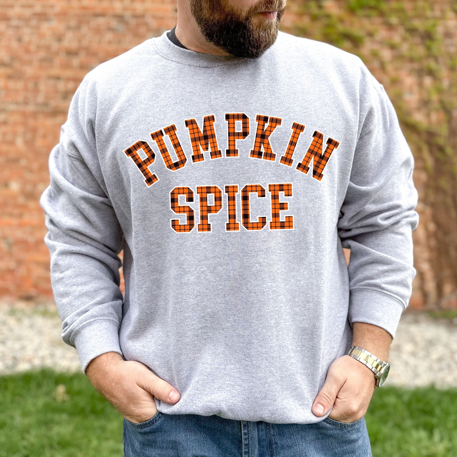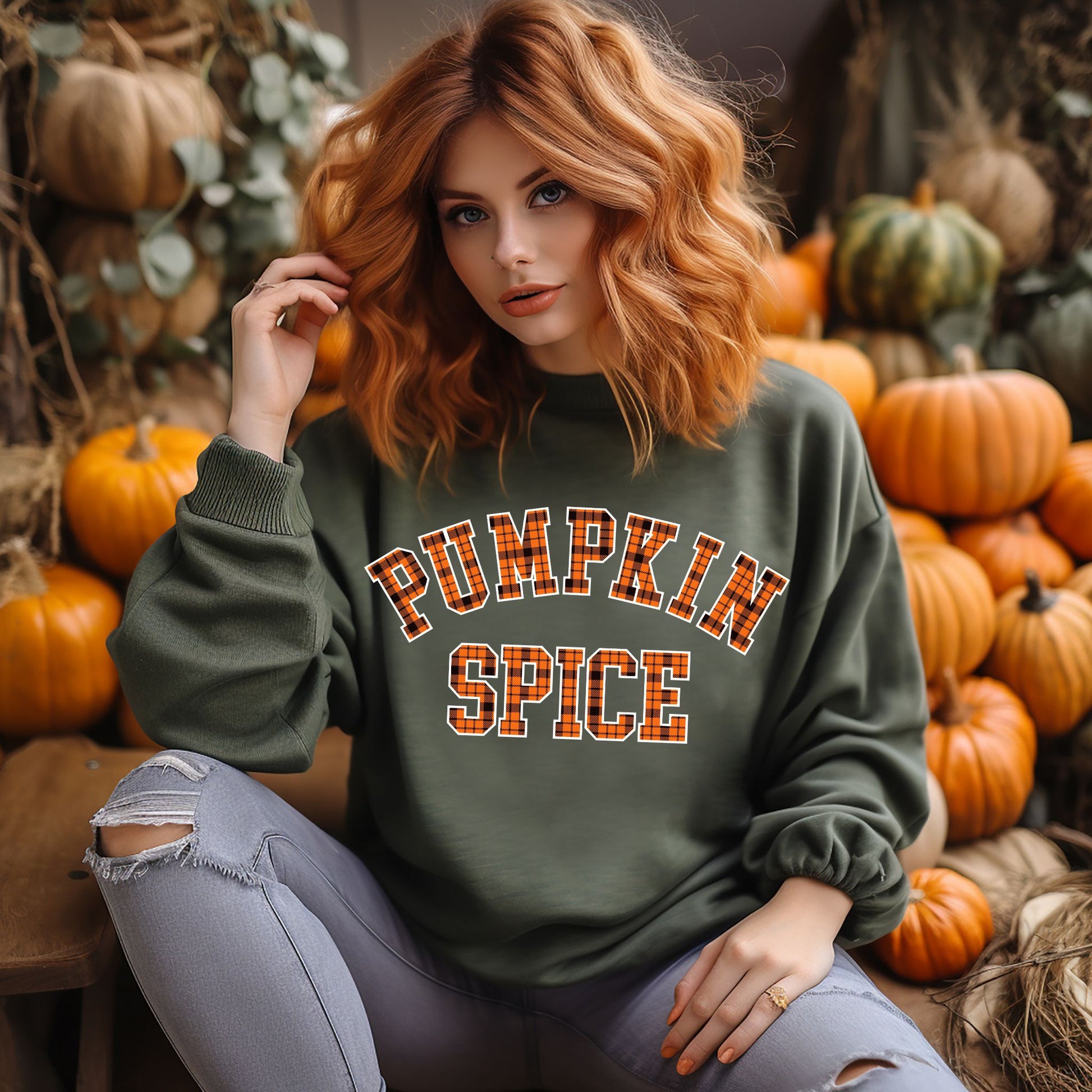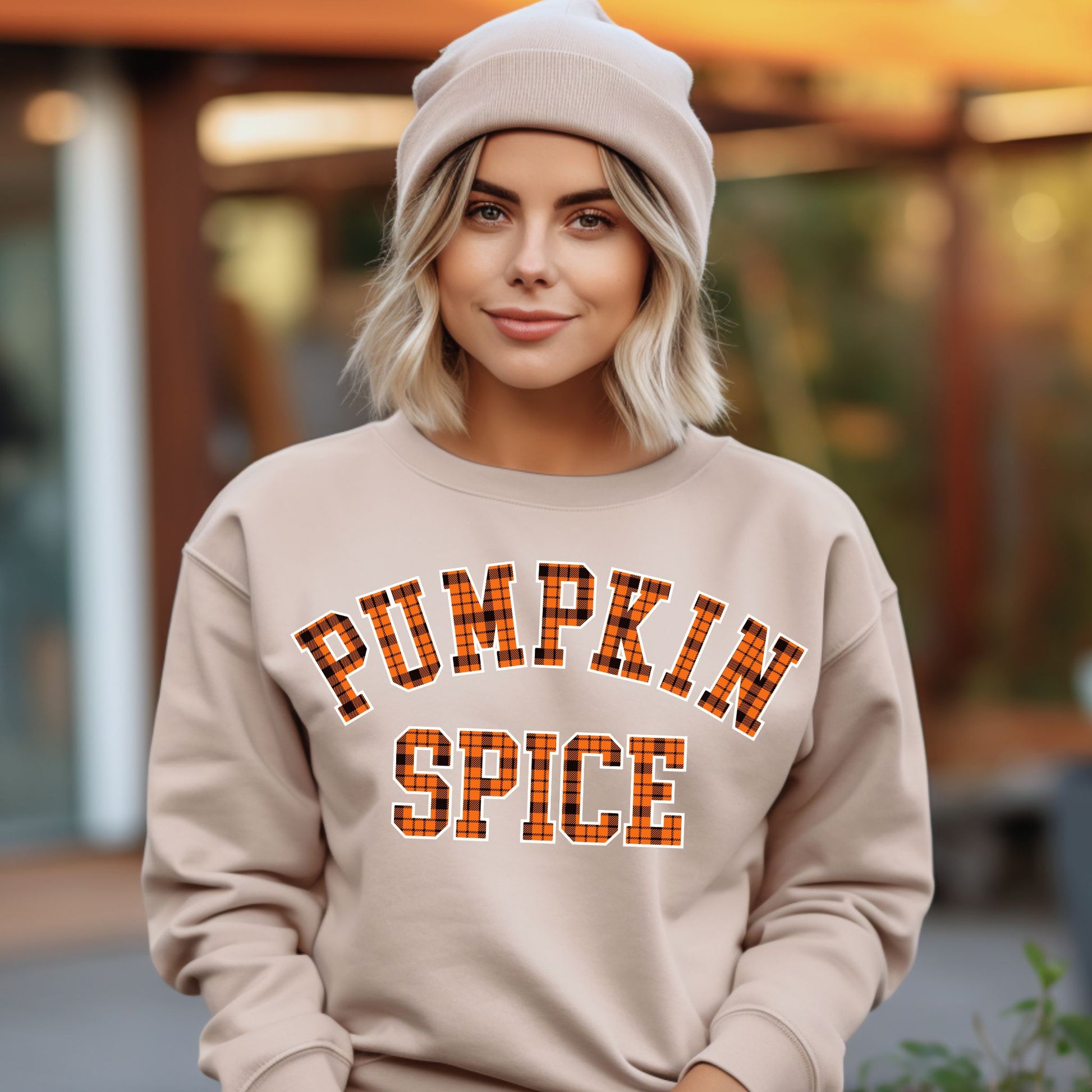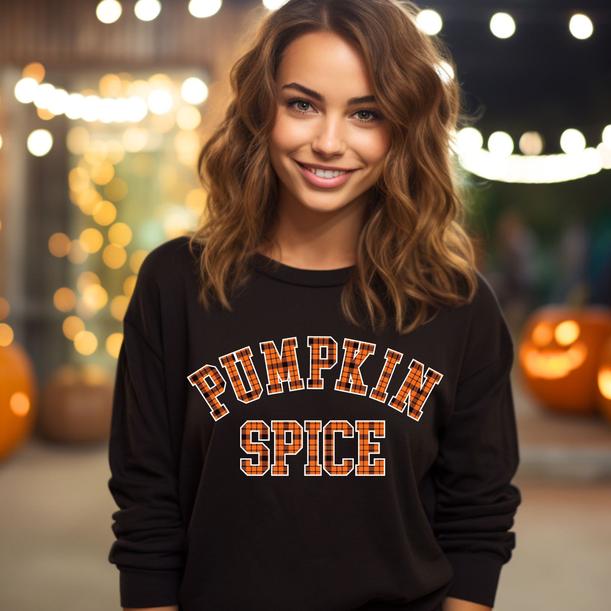 Show off your love for fall flavors with our Pumpkin Spice Shirt! Featuring bold varsity-style lettering filled with a classic orange and black plaid flannel pattern, this autumn-themed sweatshirt is perfect for cozy days, pumpkin patch visits, and sipping on your favorite seasonal latte. With a simple yet stylish design, it’s a must-have for anyone who loves pumpkin spice season and fall fashion. Perfect for layering with sweaters, jackets, or worn solo for a casual autumn vibe!