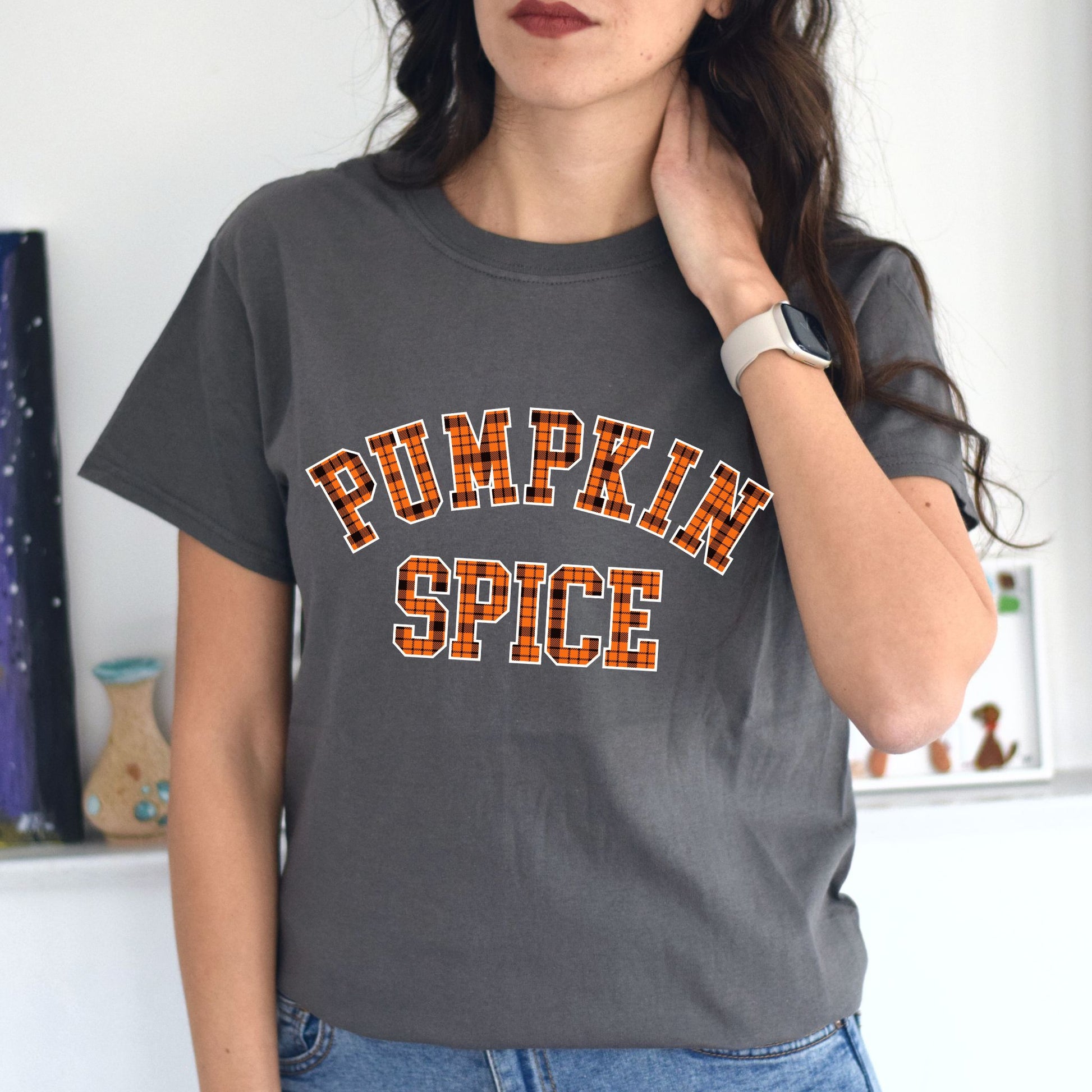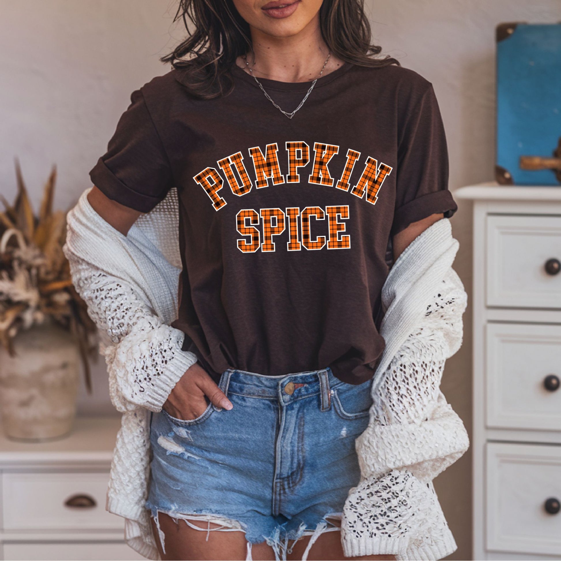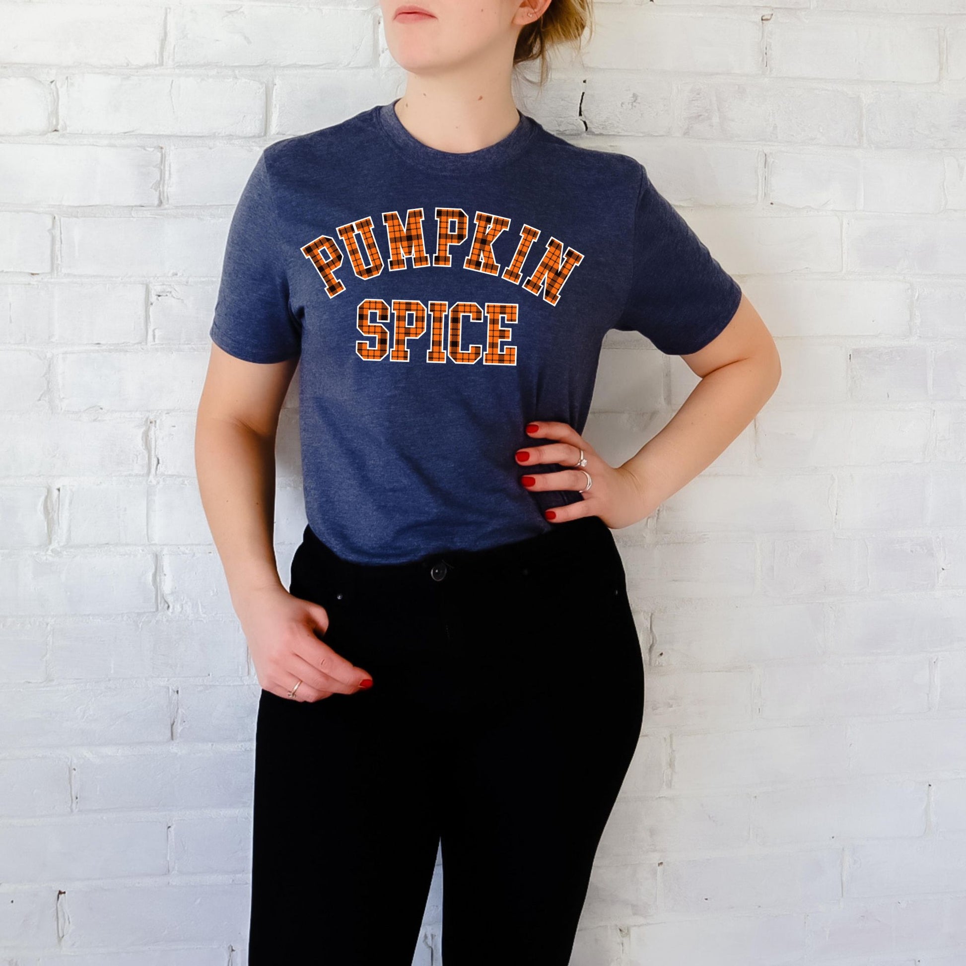Show off your love for fall flavors with our Pumpkin Spice T-Shirt! Featuring bold varsity-style lettering filled with a classic orange and black plaid flannel pattern, this autumn-themed tee is perfect for cozy days, pumpkin patch visits, and sipping on your favorite seasonal latte. With a simple yet stylish design, it’s a must-have for anyone who loves pumpkin spice season and fall fashion. Perfect for layering with sweaters, jackets, or worn solo for a casual autumn vibe!