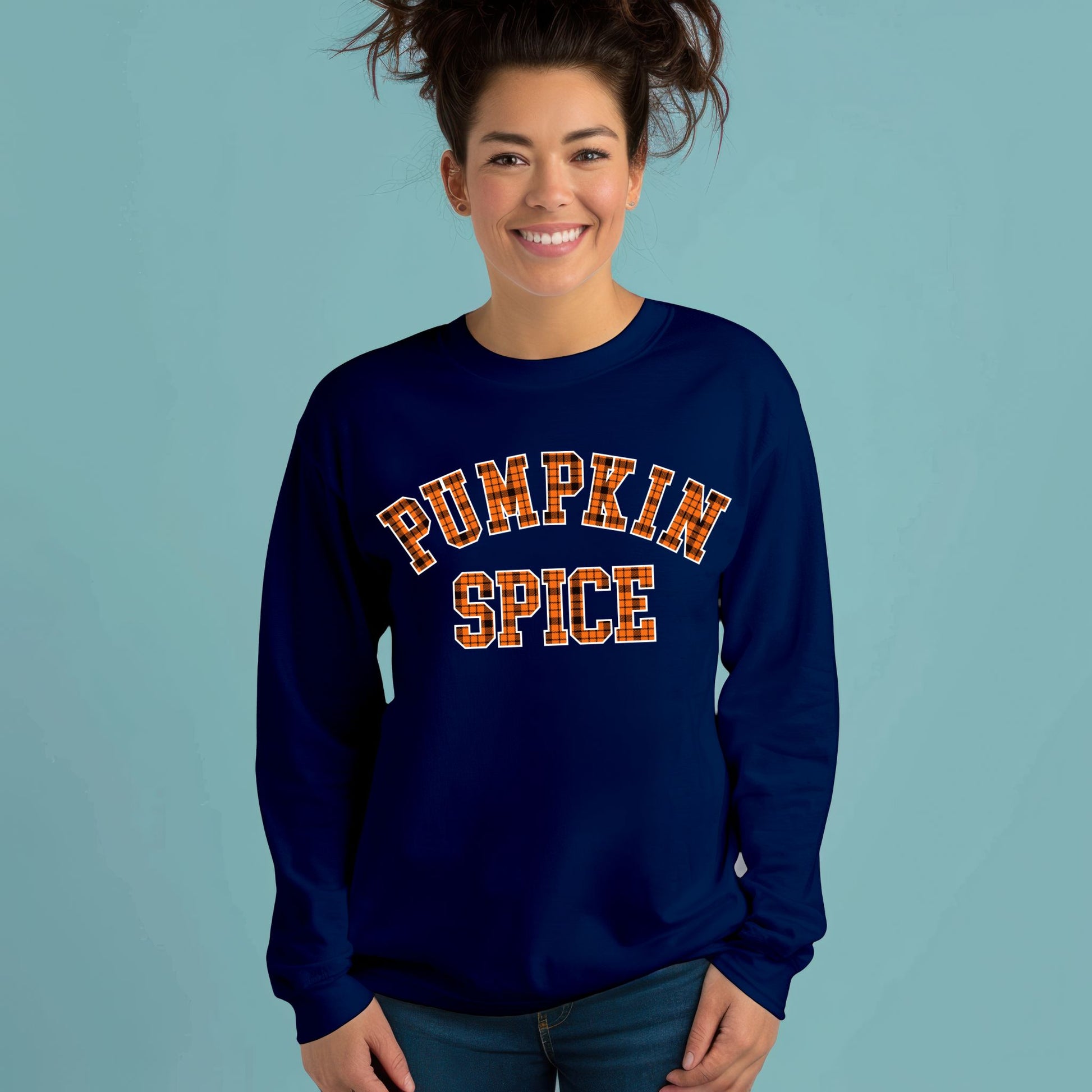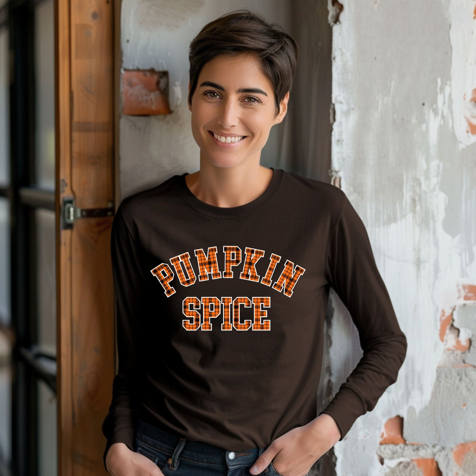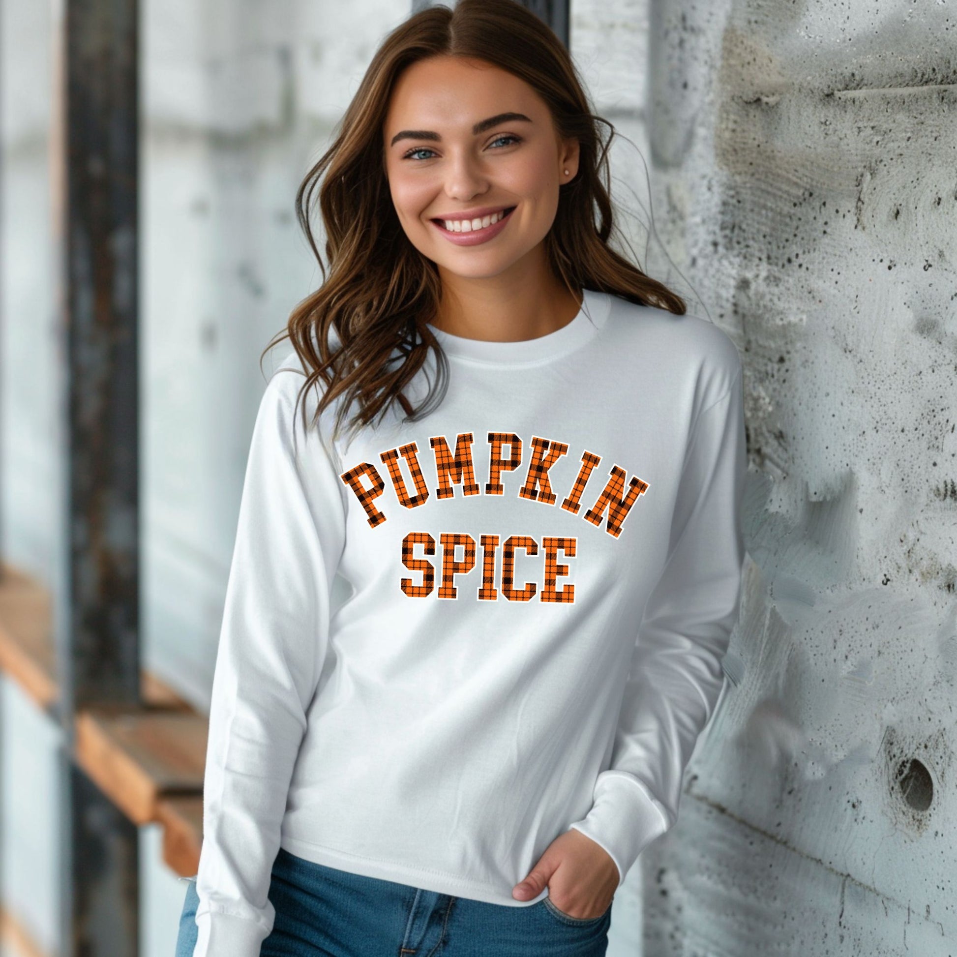 Show off your love for fall flavors with our Pumpkin Spice T-Shirt! Featuring bold varsity-style lettering filled with a classic orange and black plaid flannel pattern, this autumn-themed tee is perfect for cozy days, pumpkin patch visits, and sipping on your favorite seasonal latte. With a simple yet stylish design, it’s a must-have for anyone who loves pumpkin spice season and fall fashion. Perfect for layering with sweaters, jackets, or worn solo for a casual autumn vibe!