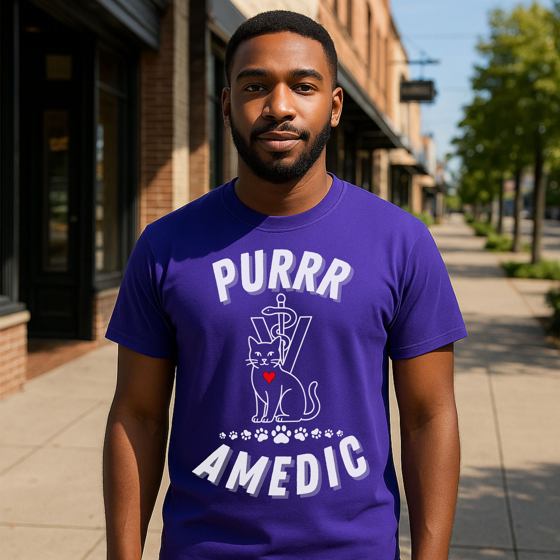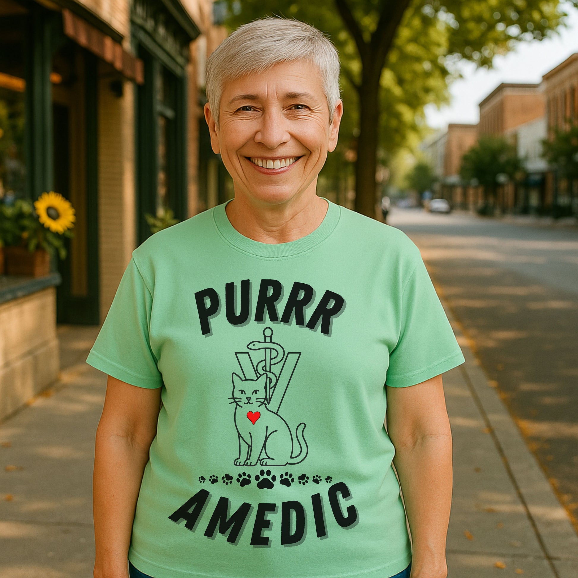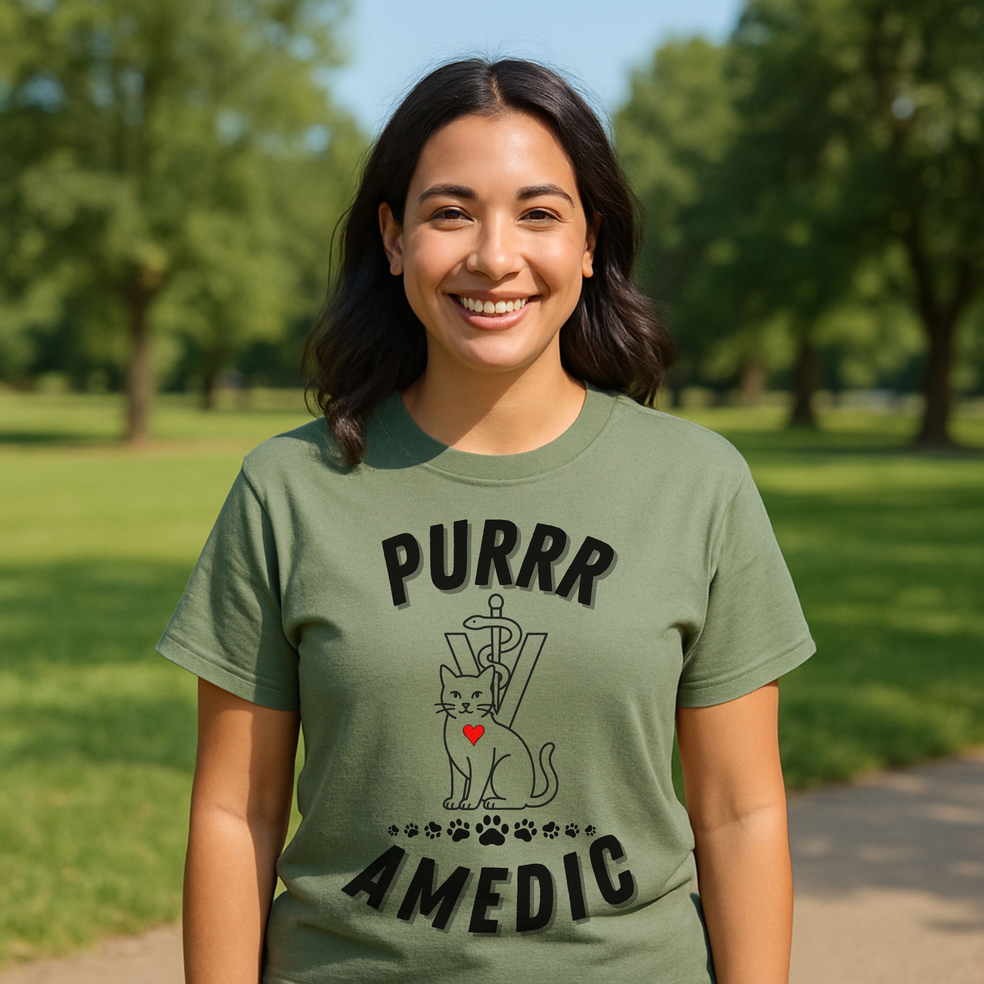 Purramedic Cat Lover T-Shirt – Funny Vet Tech Gift & Animal Rescue Tee