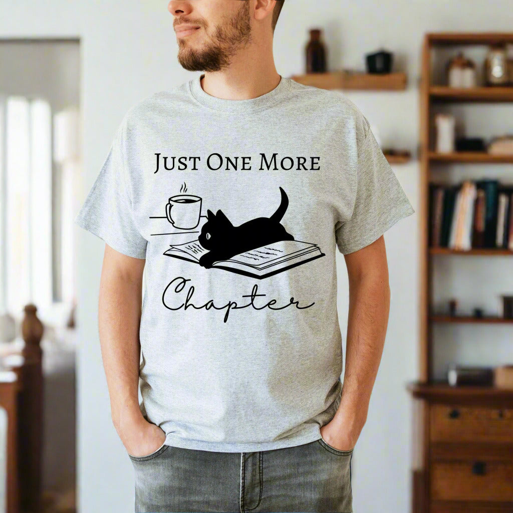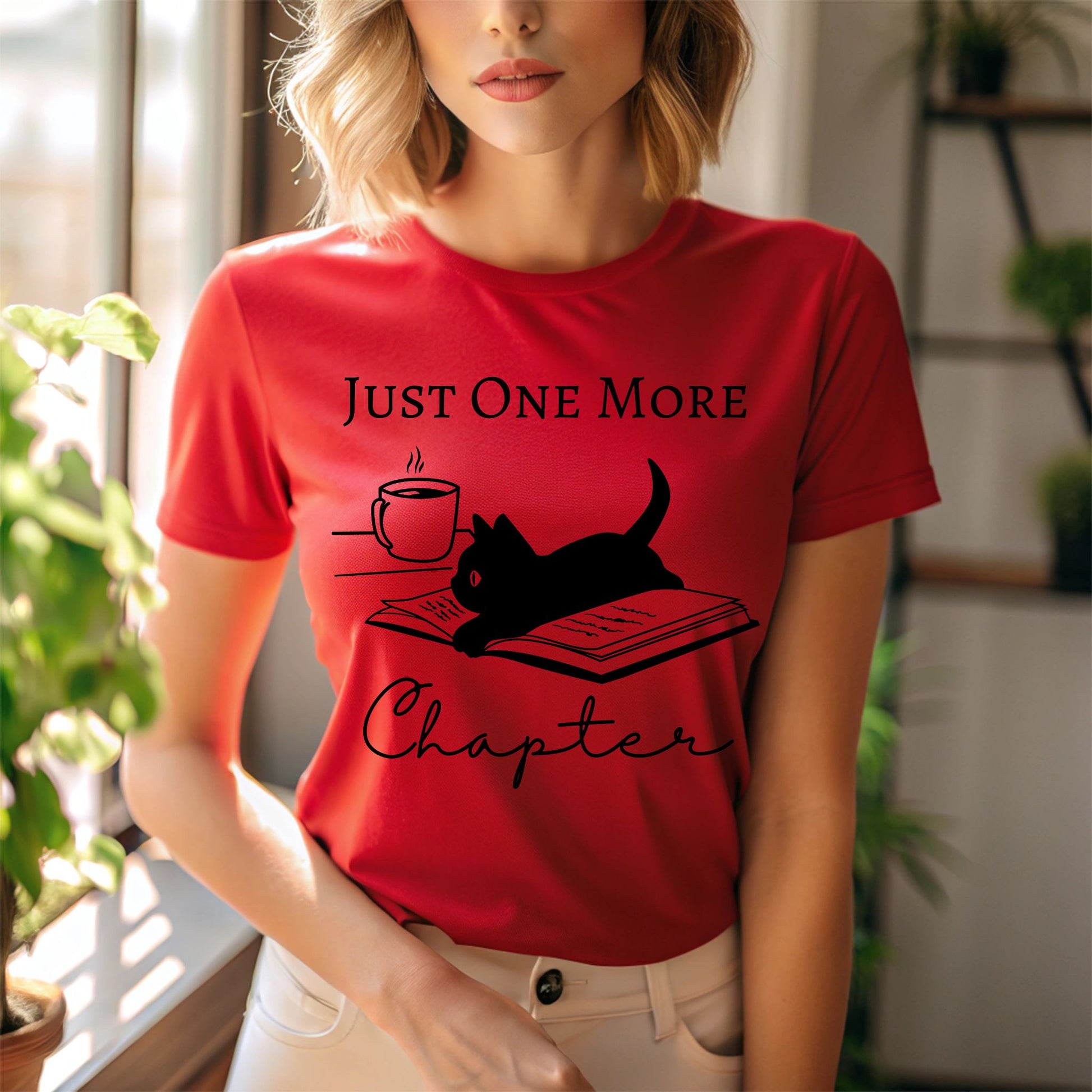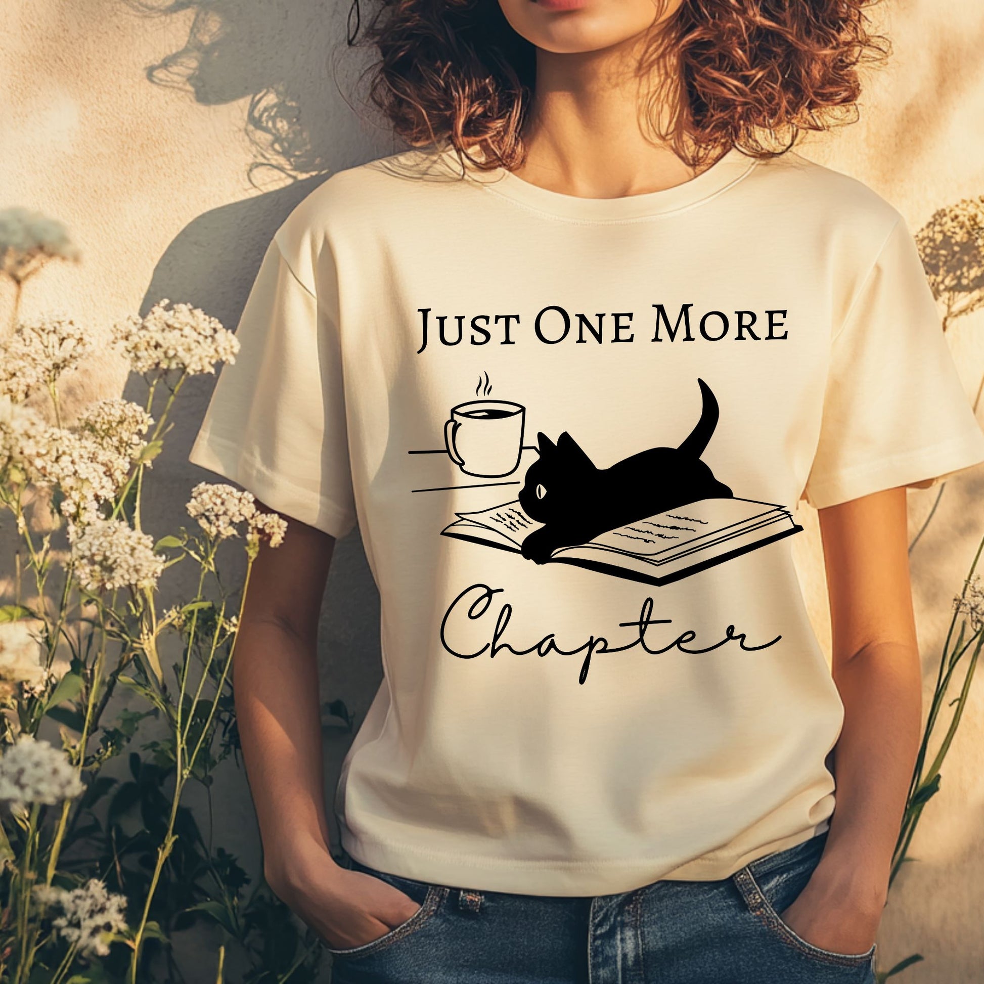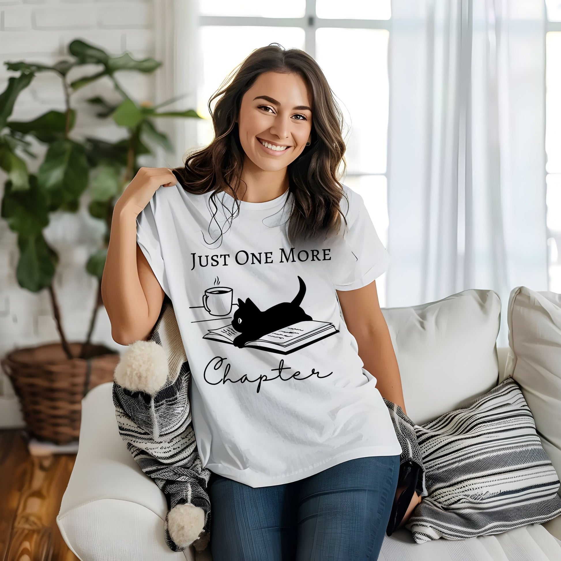 Reading Shirt For Book Lover Gifts Just One More Chapter Tshirt for Bookish Gifts Cat Lover Tee Black Cat Gifts