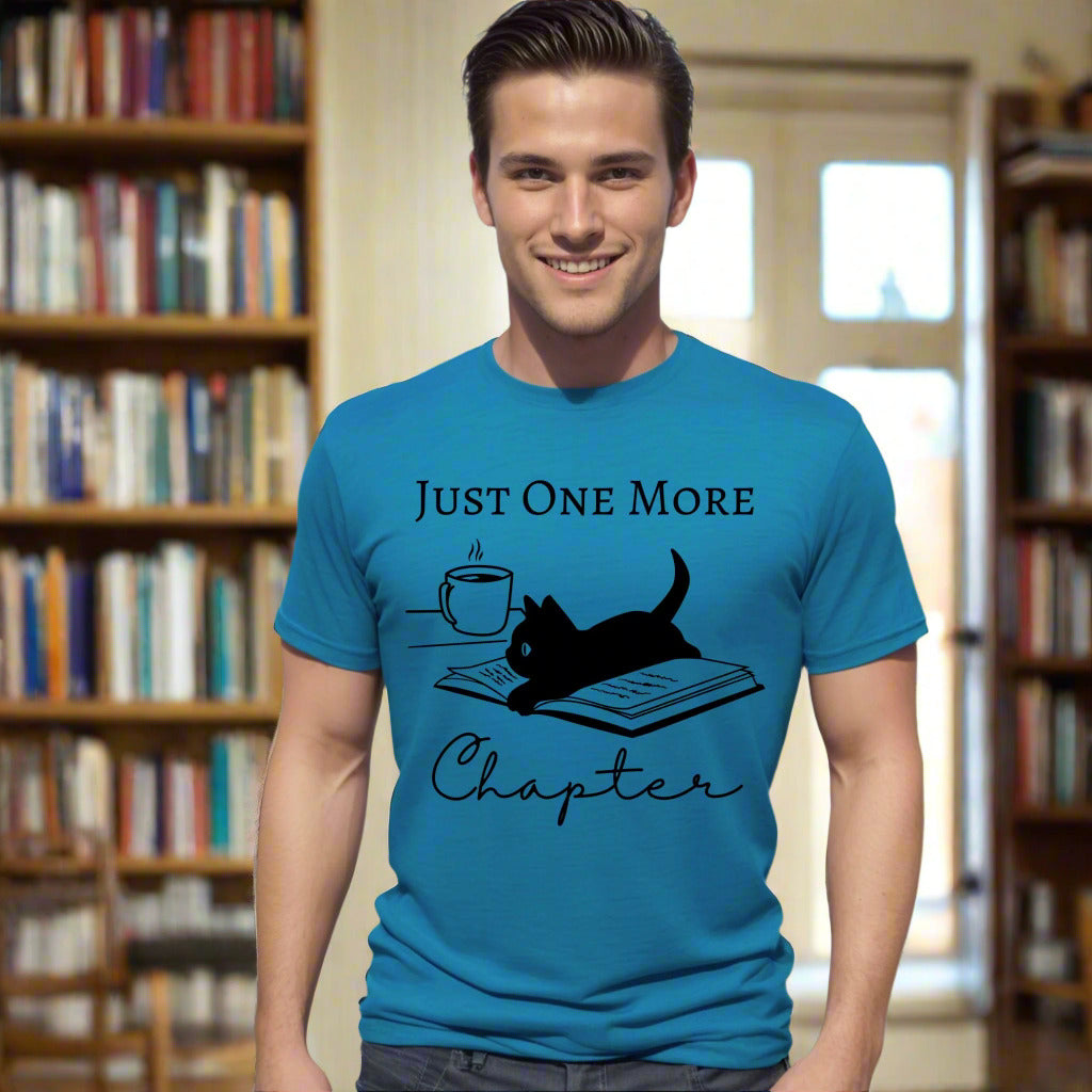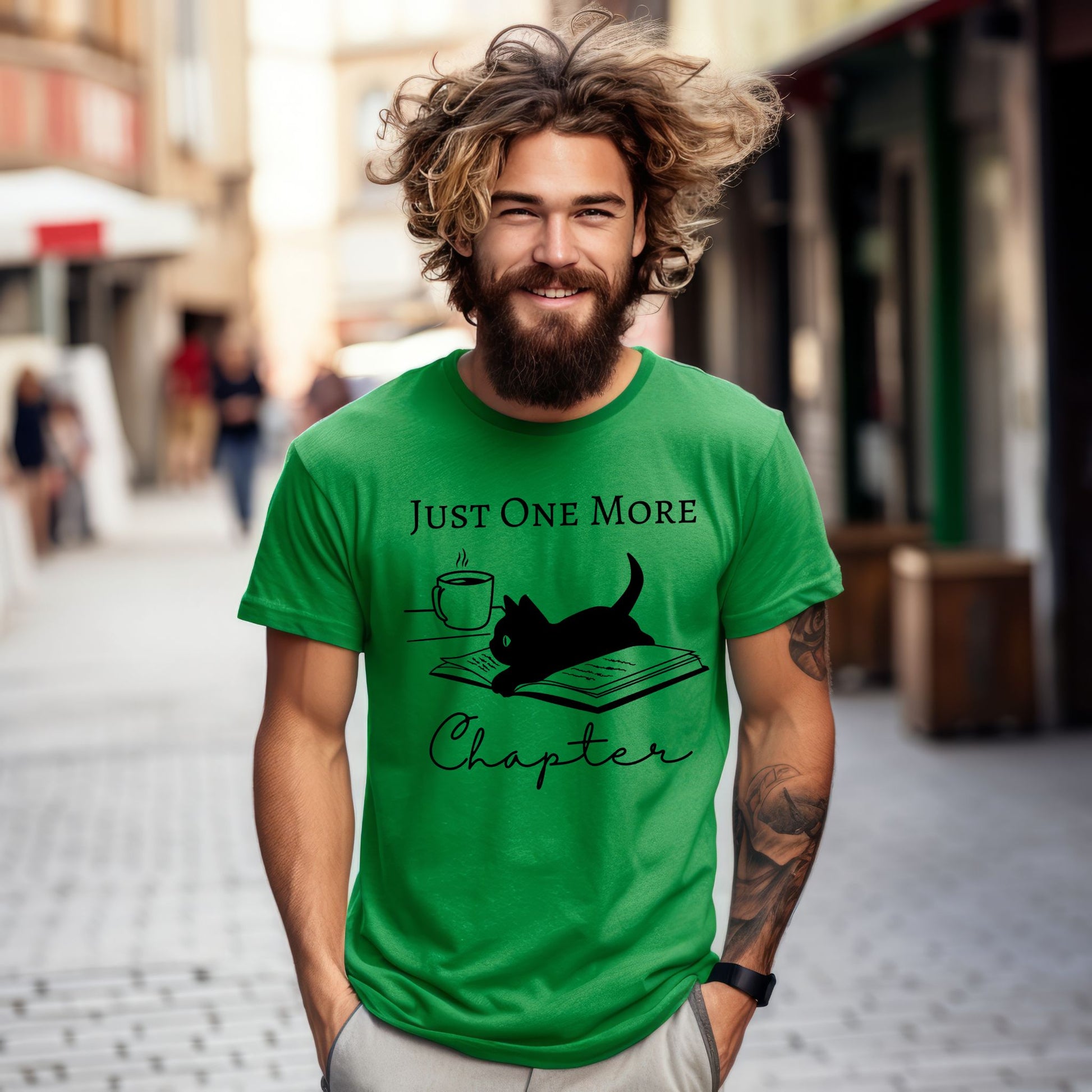 Introducing the purrfect addition to your wardrobe: our adorable black cat reading shirt! This unique and charming design features a graphic of a black cat stretched across an open book, accompanied by the text "just one more chapter." As a delightful combination of your love for cats and books, this shirt is sure to become your new favorite go-to piece. Our reading shirt makes an excellent bookish gift for cat lovers, bibliophiles, and reading teachers alike. It's also a fantastic way to treat yourself or share your interests with the world. Available in a wide range of sizes, this bookish shirt is designed to flatter all body types and provide a comfortable fit. Our bibliophile gift truly captures the essence of the showcases creativity, authenticity, and quality. As a cute cat shirt that speaks to your passions, it's a wonderful conversation starter and a stylish way to express your love for books and feline friends. Whether you're shopping for bookish gifts, a reading teacher shirt, black cat gifts or simply looking to add some literary flair to your wardrobe, our black cat reading shirt is the cat's meow. Don't miss out on this charming and unique piece – order yours today and let the reading adventures begin!