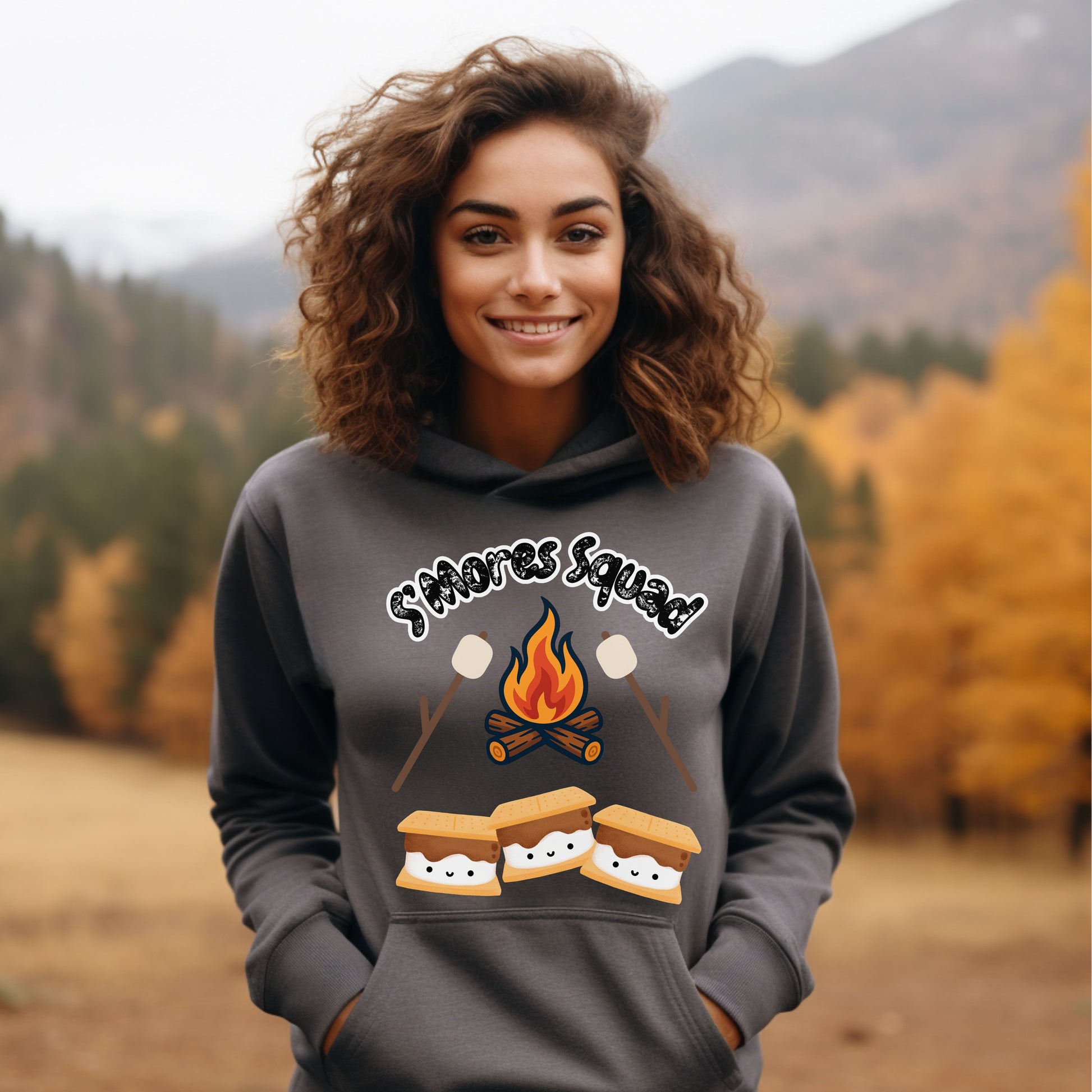S'mores Squad Hoodie, Fun Camping Shirt, Unisex Graphic Sweatshirt, Outdoor Adventure Outfit