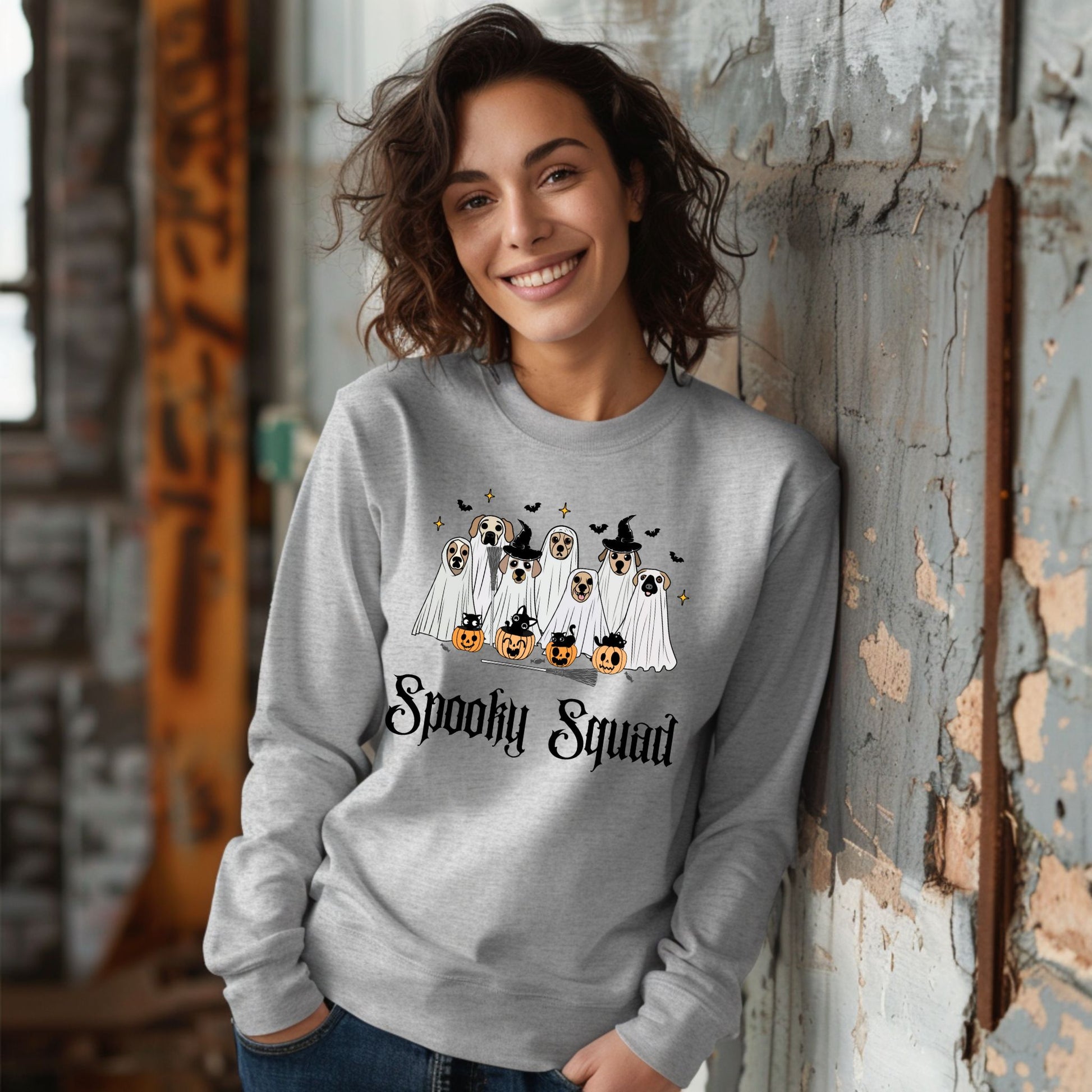Perfect for any pet lovers or Halloween fanatics, this pet lover gift is sure to be a huge hit. The fun graphics show a group of dogs dressed as ghosts with the phrase “Spooky Squad” below them, while the black kittens add an even more magical touch. Not only does this shirt look great, but it's comfortable too. Treat yourself or someone special in your life to this unique pet lover gift. With its original design and comfortable fabric, you won’t regret adding this shirt to your wardrobe. Grab yours now and show off your love for animals and the spooky season! Create your own spooky squad with this adorable and cute Halloween shirt! Perfect for dog lovers, Halloween fans, and anyone who enjoys cute and spooky style, this shirt is great for fall festivals, Halloween parties, pumpkin patch visits, or cozy autumn days. With playful, festive artwork and a fun vibe, it’s a must-have for your spooky season wardrobe!