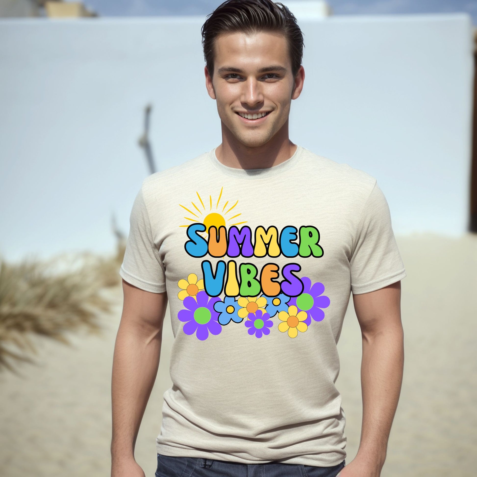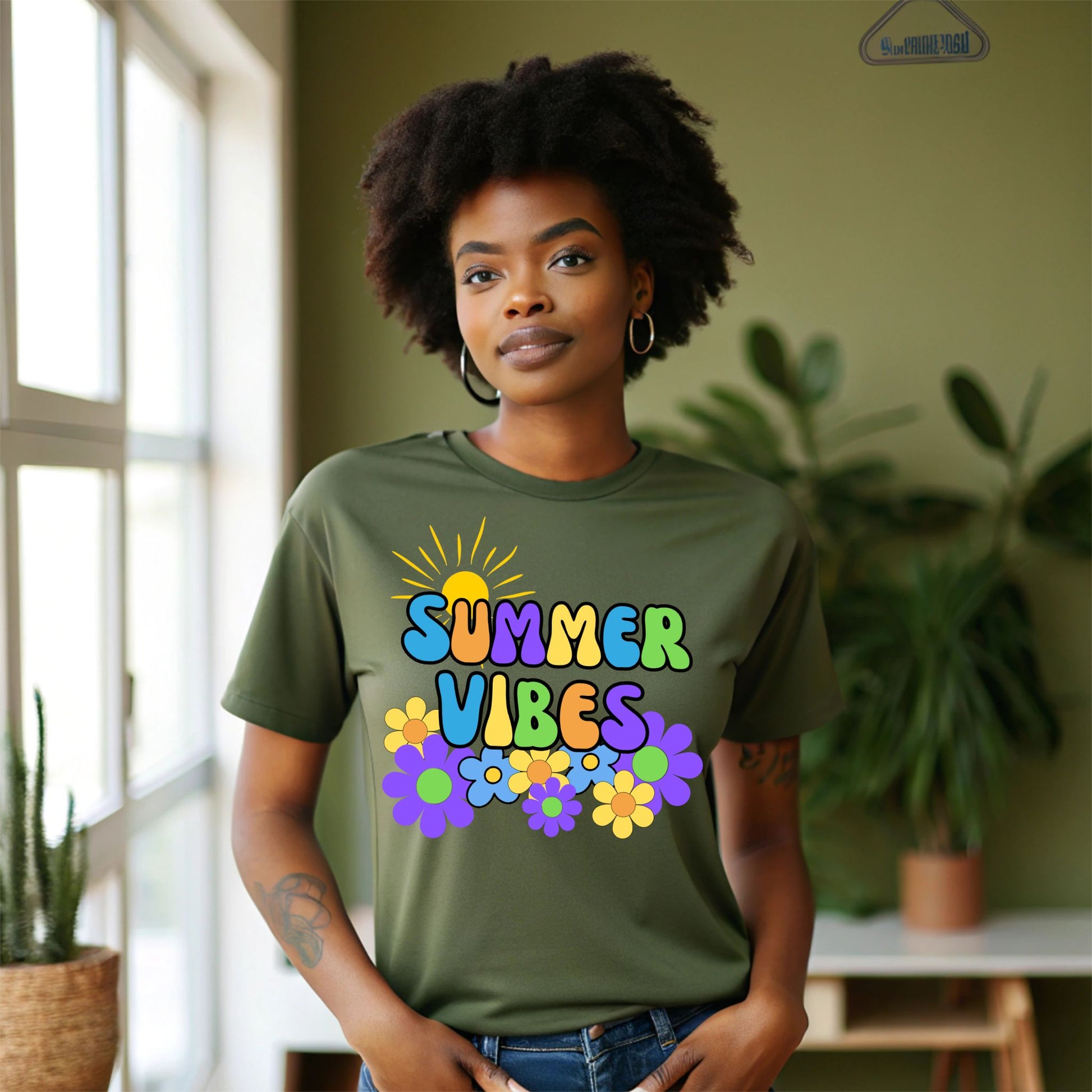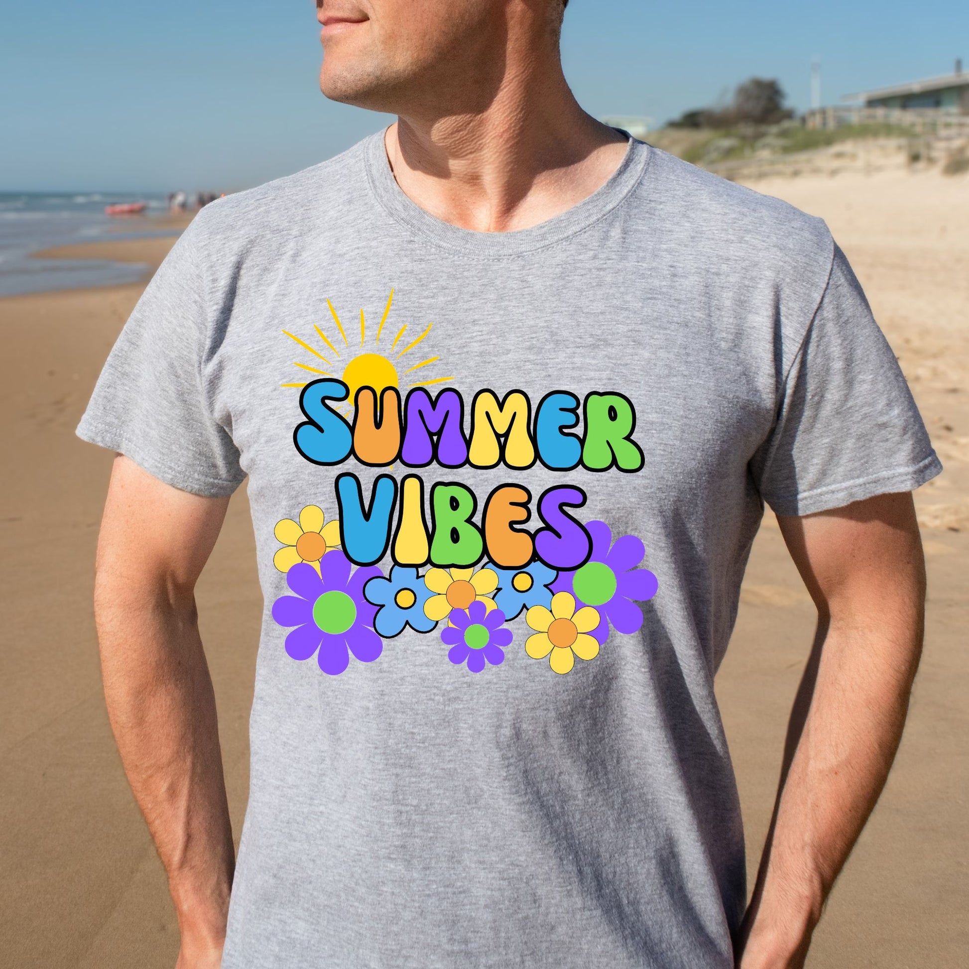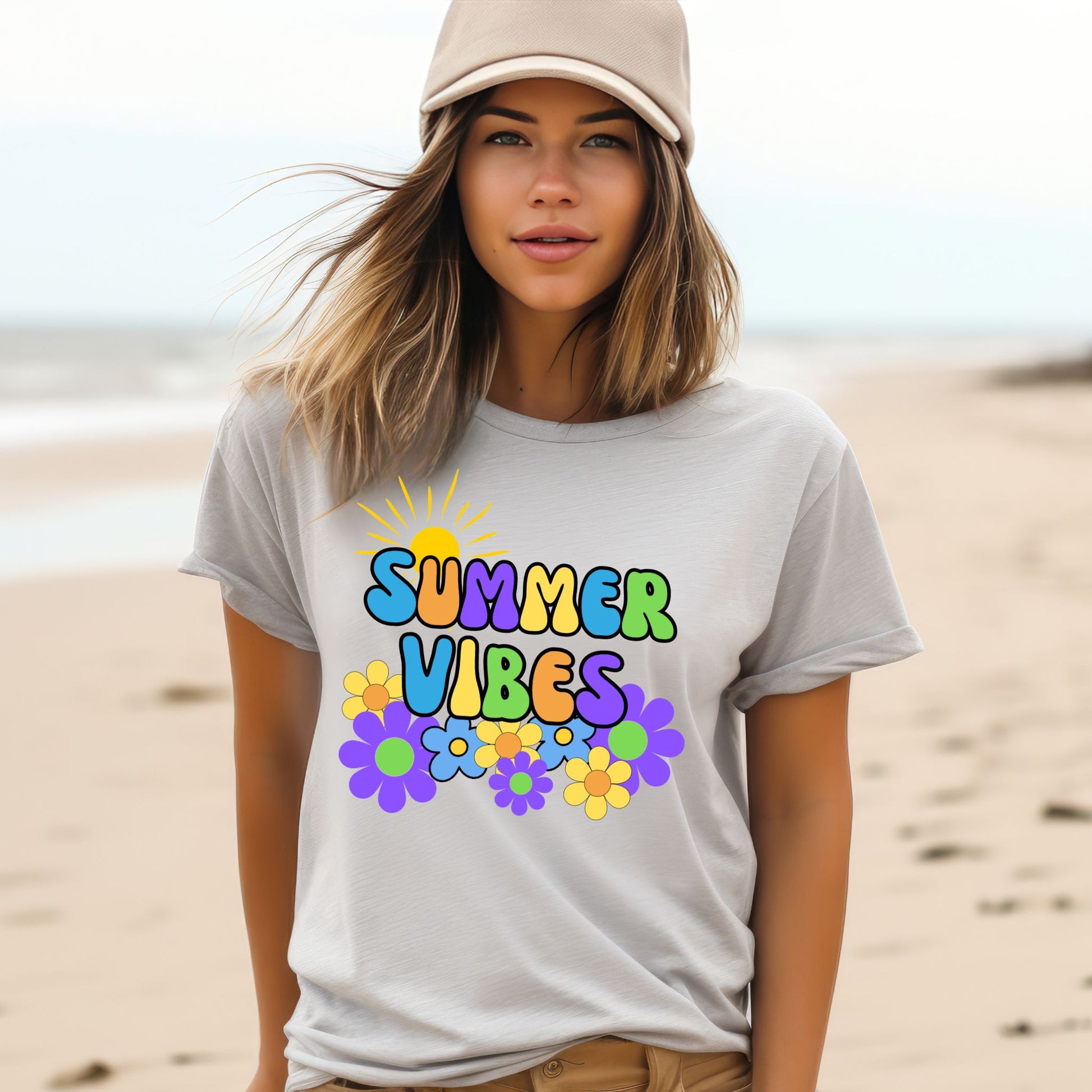 Catch the sunshine and good vibes with our Summer Vibes T-Shirt! Designed with a groovy retro sun, colorful flowers, and a vintage-style font, this tee is your go-to for laid-back summer days, beach trips, and music festivals. Made from soft, breathable cotton, it brings comfort and style wherever the warm weather takes you. Perfect for lovers of ‘70s-inspired fashion, boho aesthetics, and feel-good energy. Available in unisex sizes—because every summer needs the right vibes.