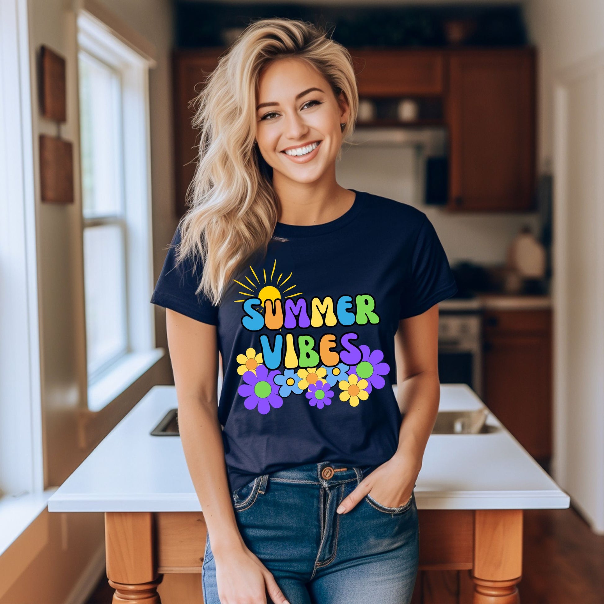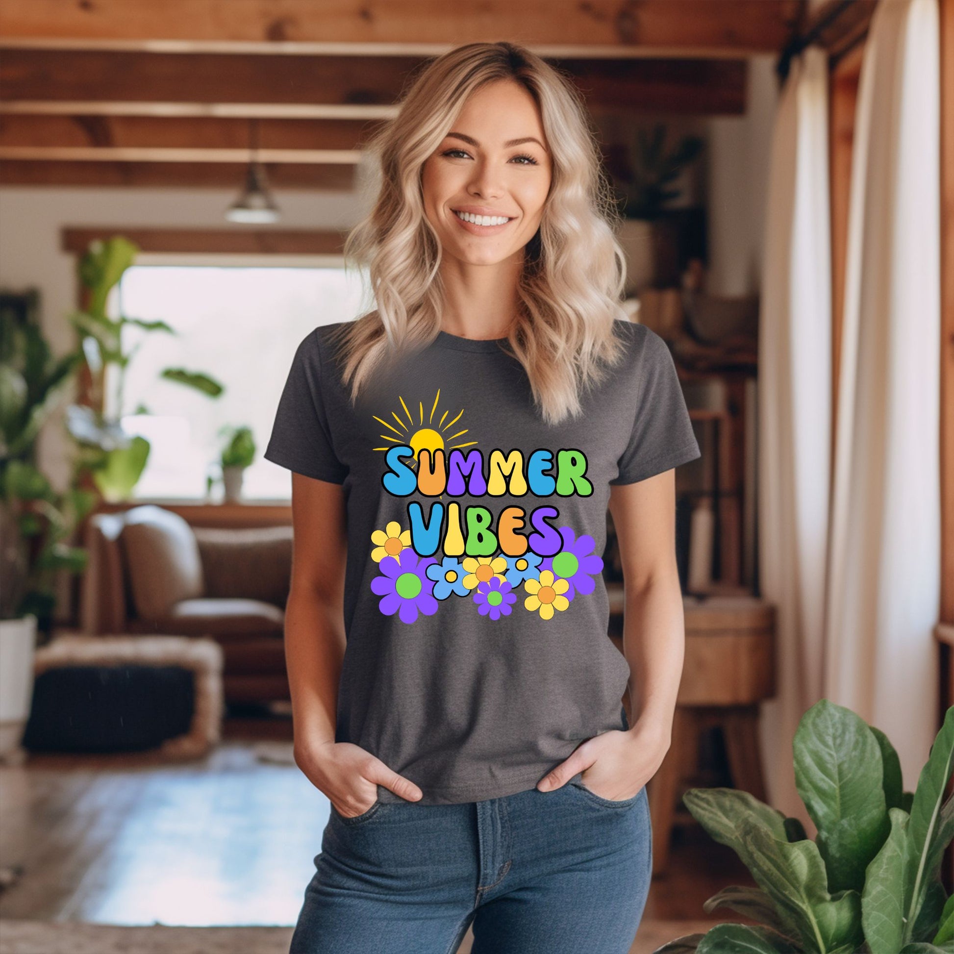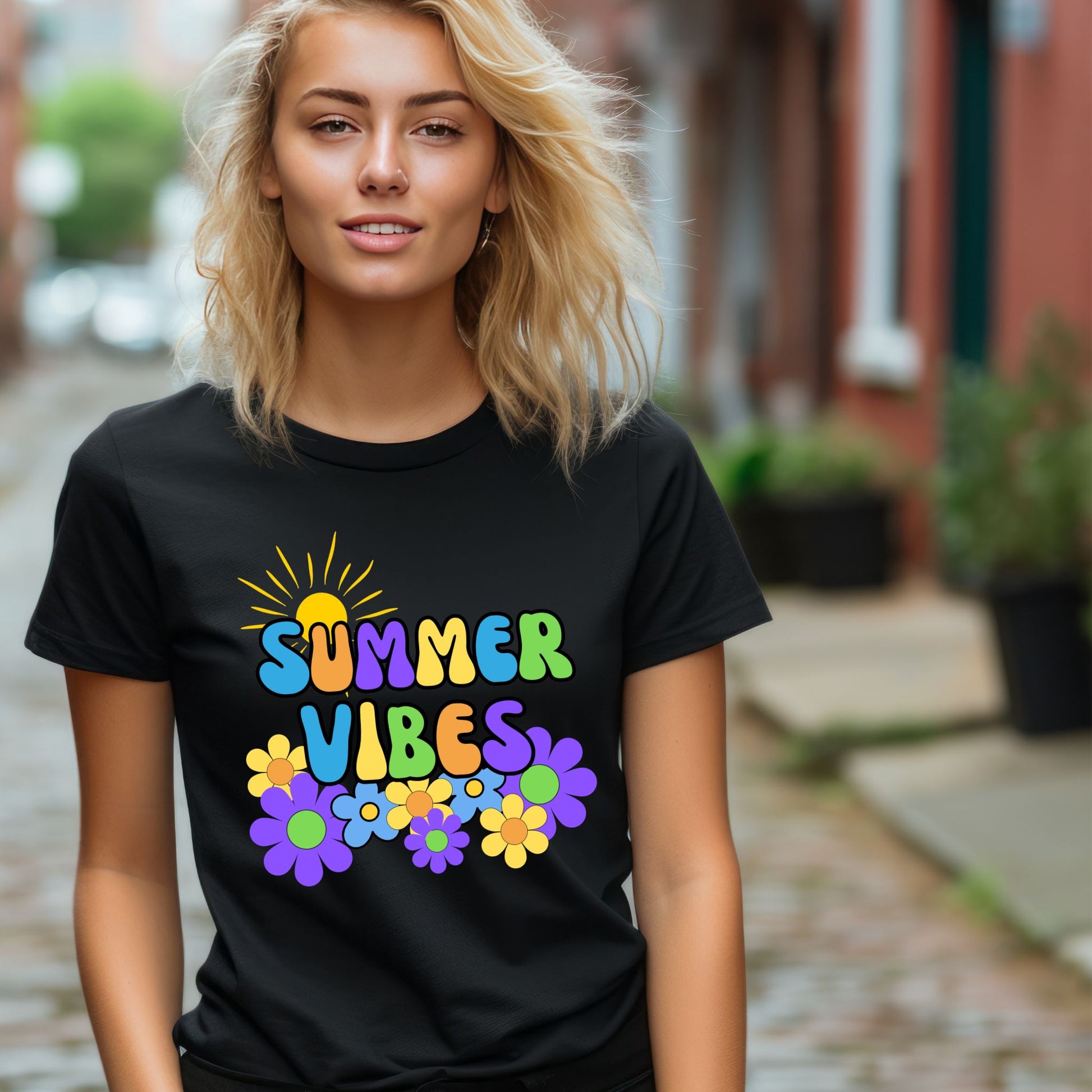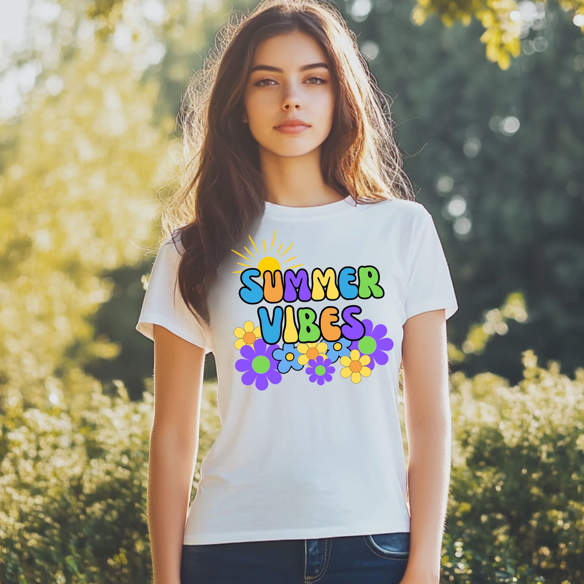Catch the sunshine and good vibes with our Summer Vibes T-Shirt! Designed with a groovy retro sun, colorful flowers, and a vintage-style font, this tee is your go-to for laid-back summer days, beach trips, and music festivals. Made from soft, breathable cotton, it brings comfort and style wherever the warm weather takes you. Perfect for lovers of ‘70s-inspired fashion, boho aesthetics, and feel-good energy. Available in unisex sizes—because every summer needs the right vibes.