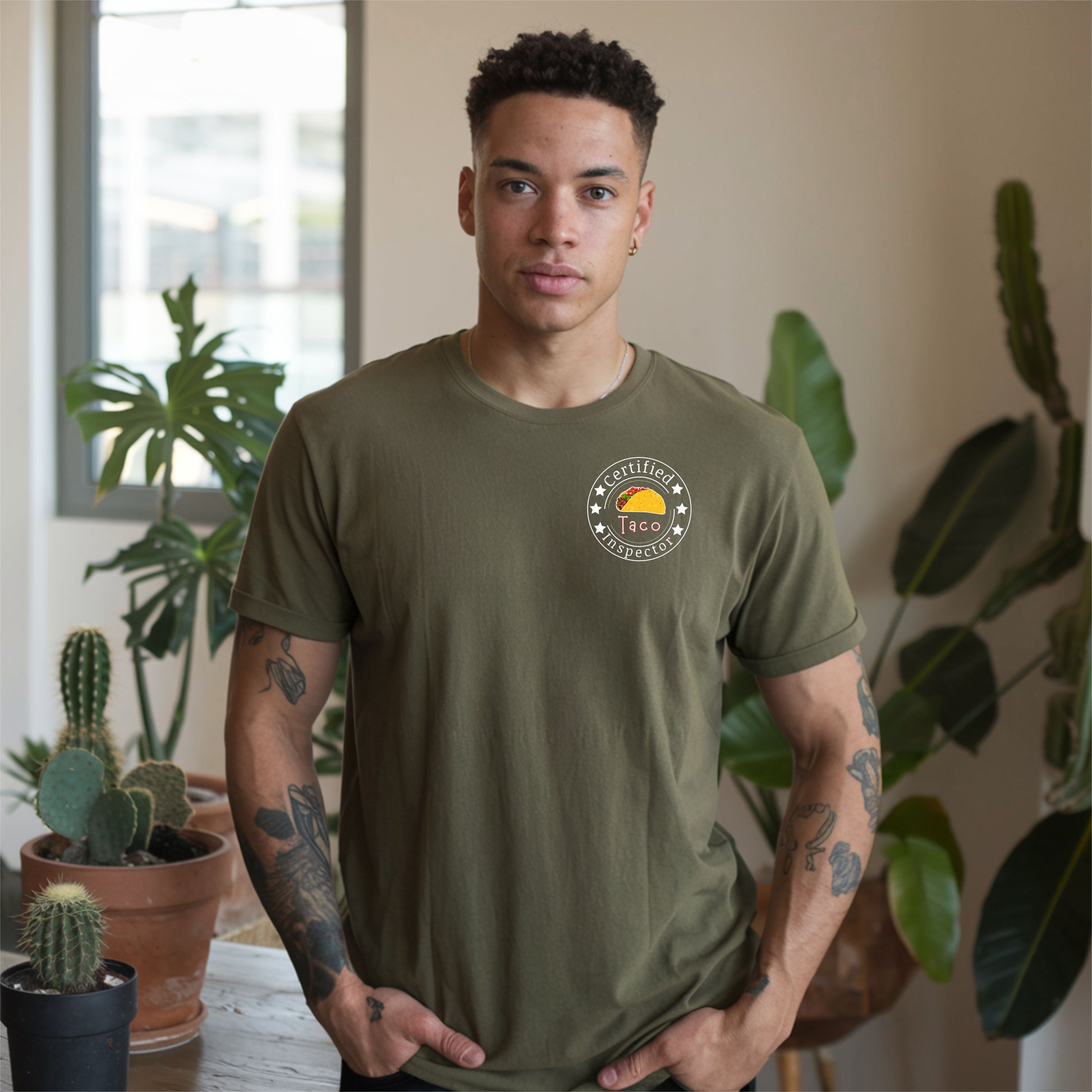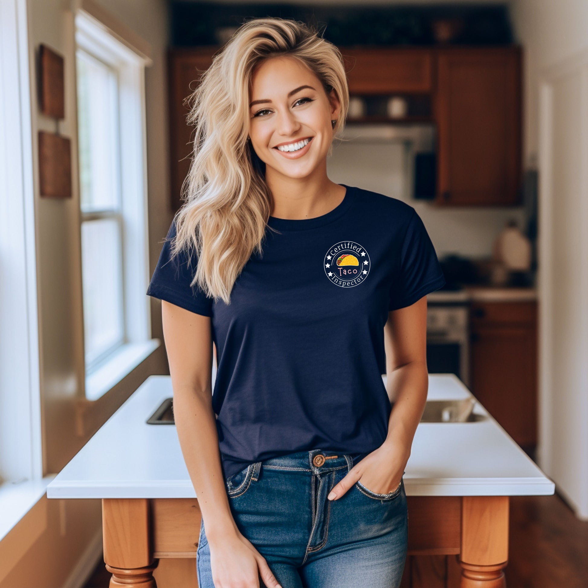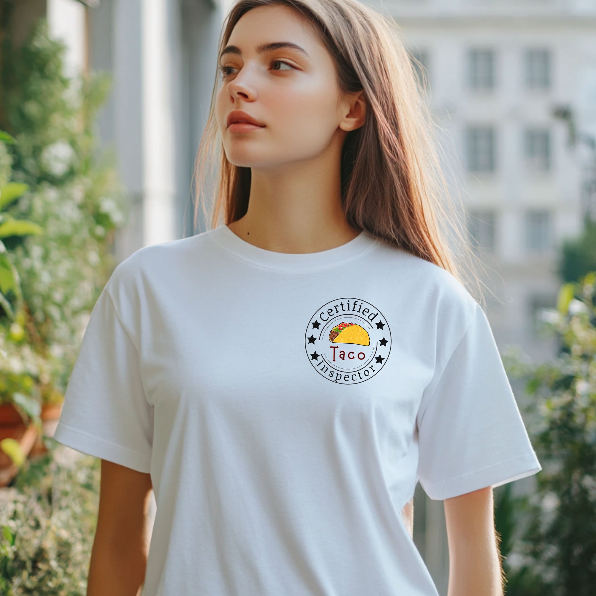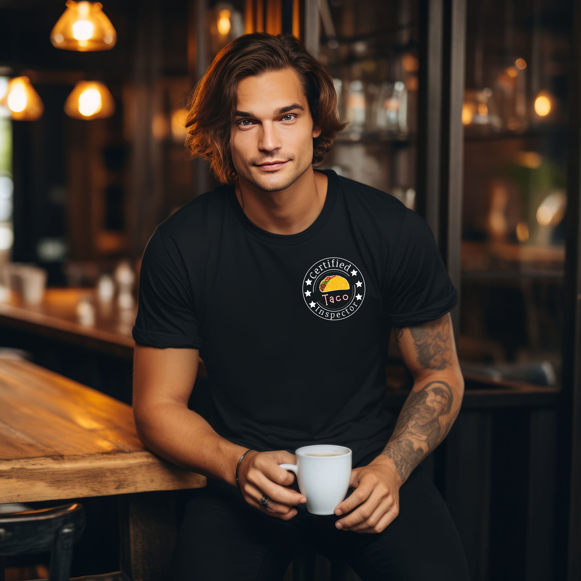 Printed on a high-quality, soft cotton shirt, it also includes a playful “Certified Taco Inspector” emblem on the front pocket area — because tacos deserve to be taken seriously. 😉