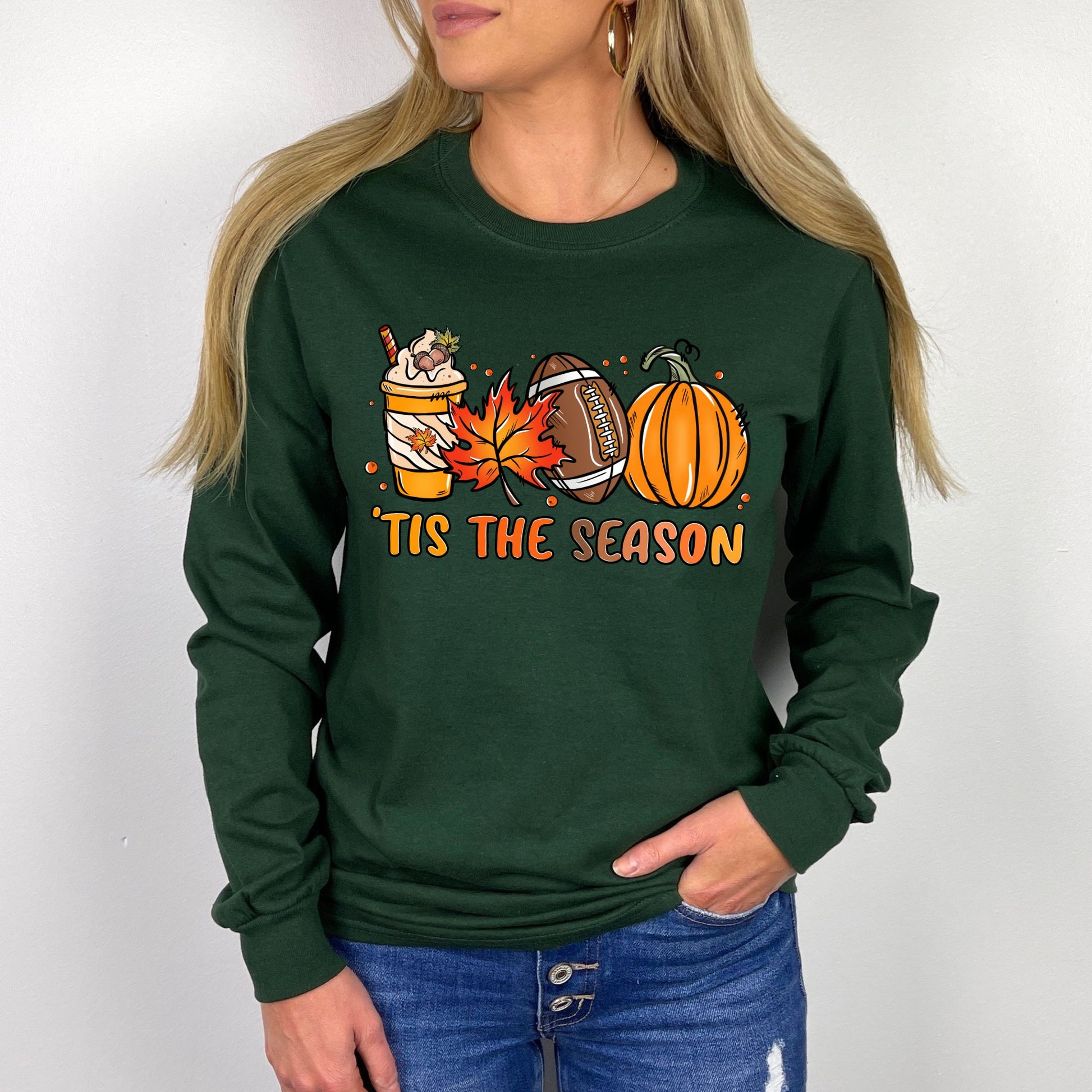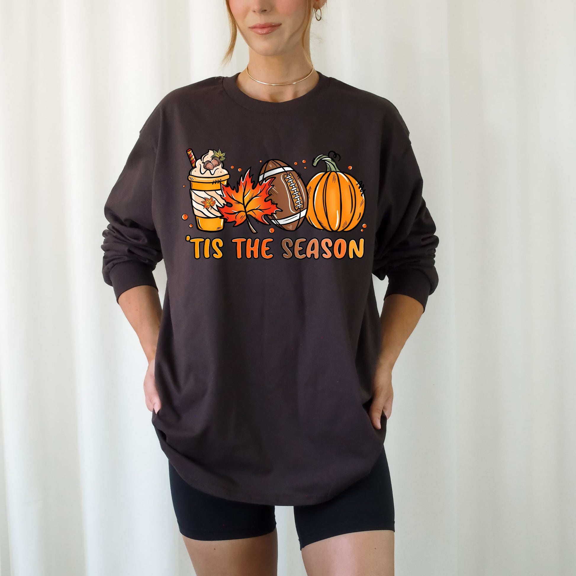 Tis The Season Shirt Pumpkin Patch TShirt Game Day Tee Coffee Lover Gift Fall Shirt Lonmg Sleeve Tee