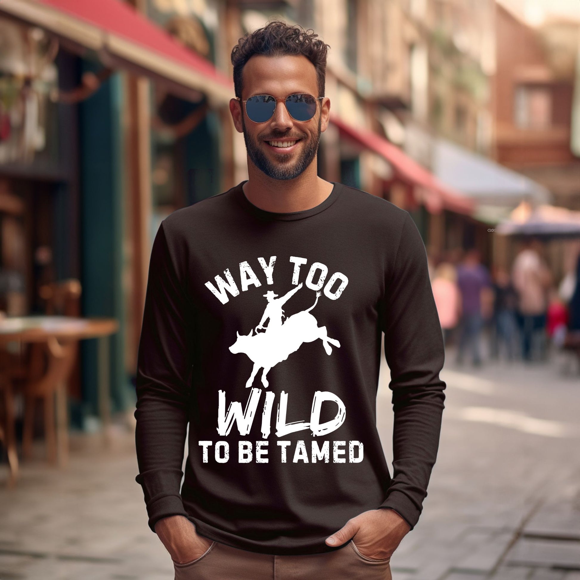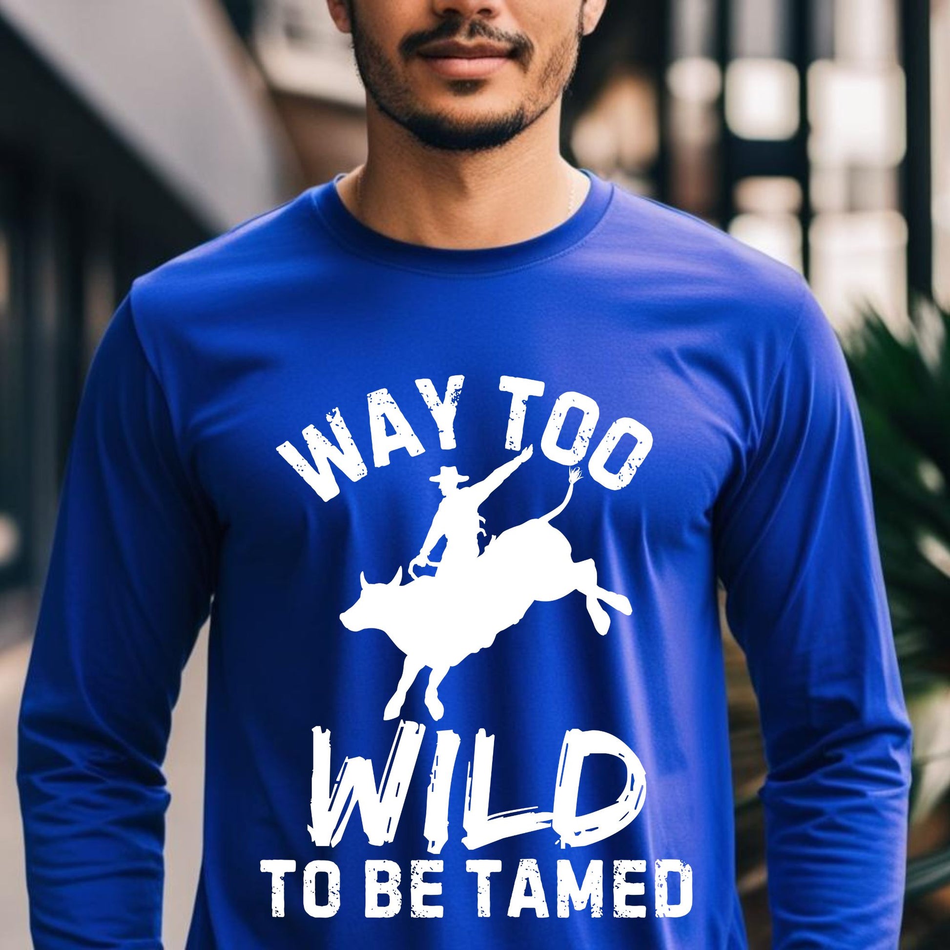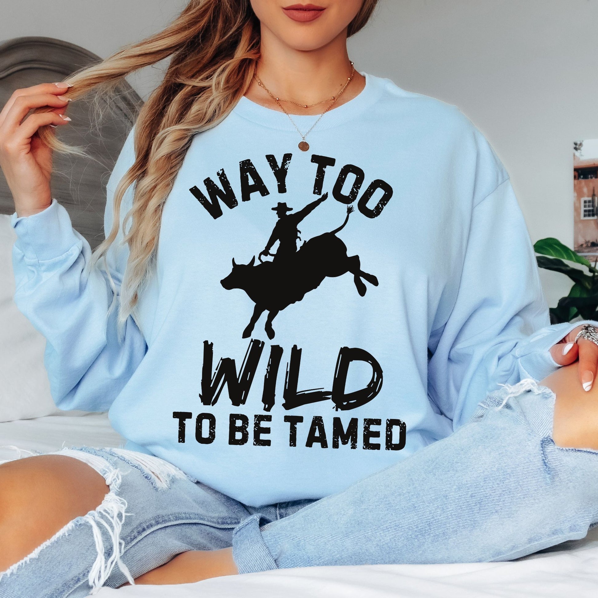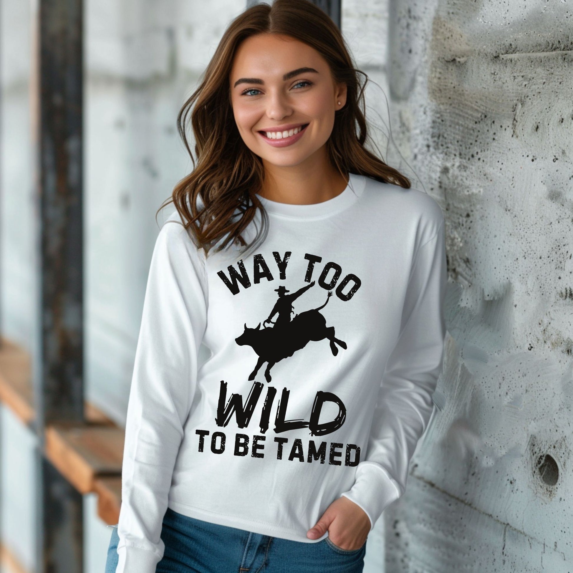 Way Too Wild To Be Tamed Rodeo-Inspired T-Shirt Western Cowboy Graphic Tee Long Sleeve Tee