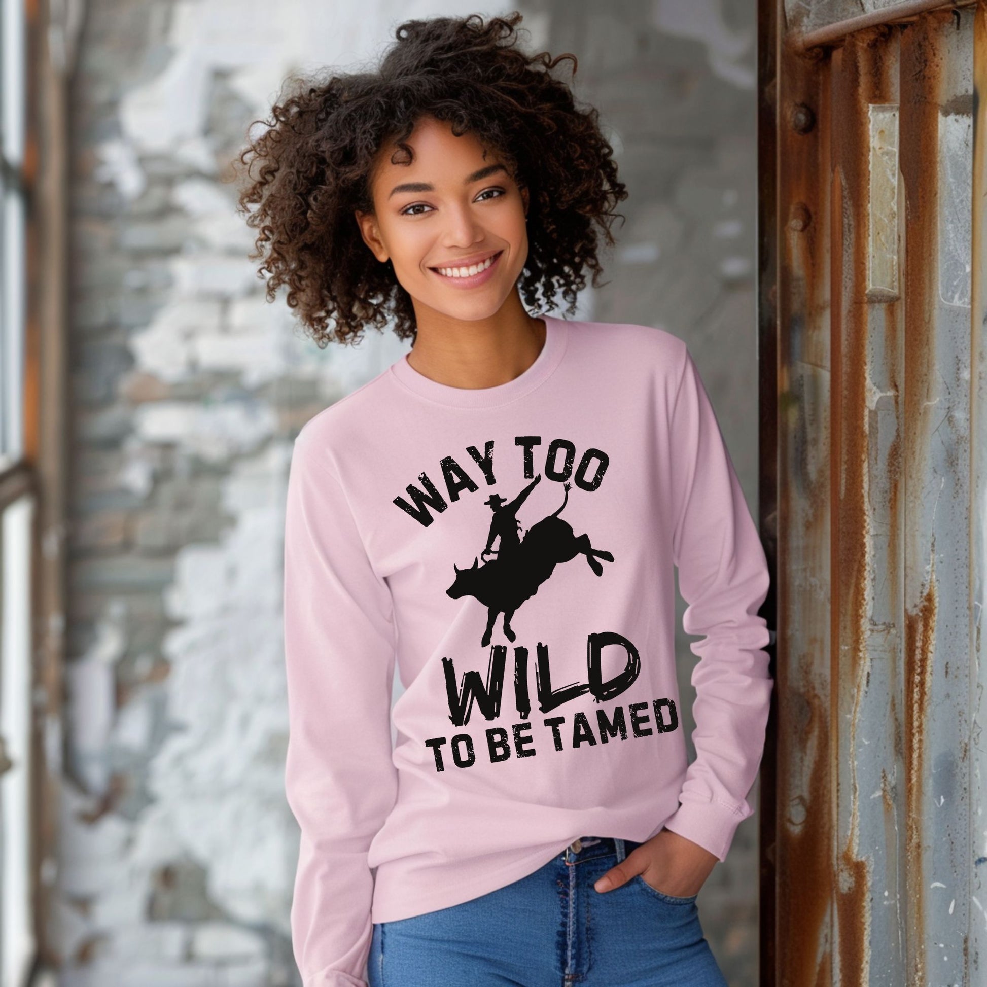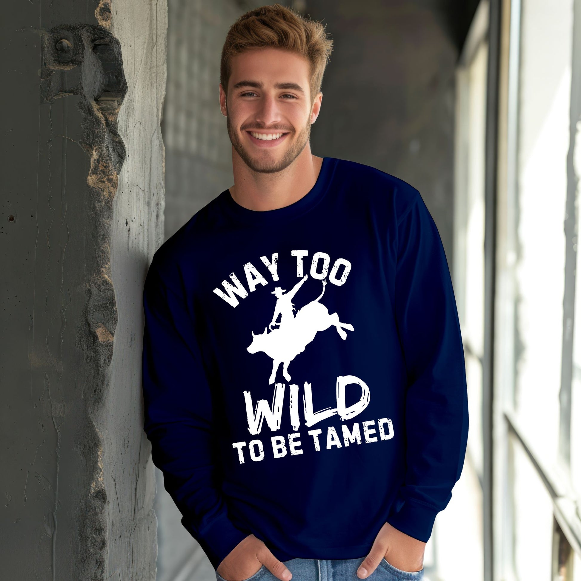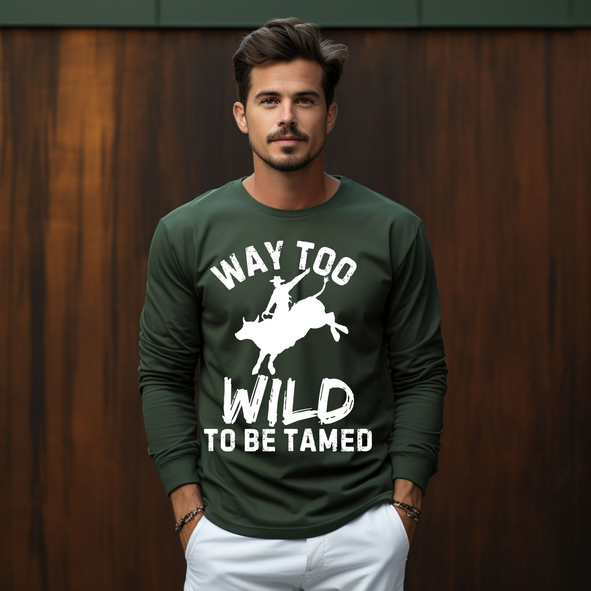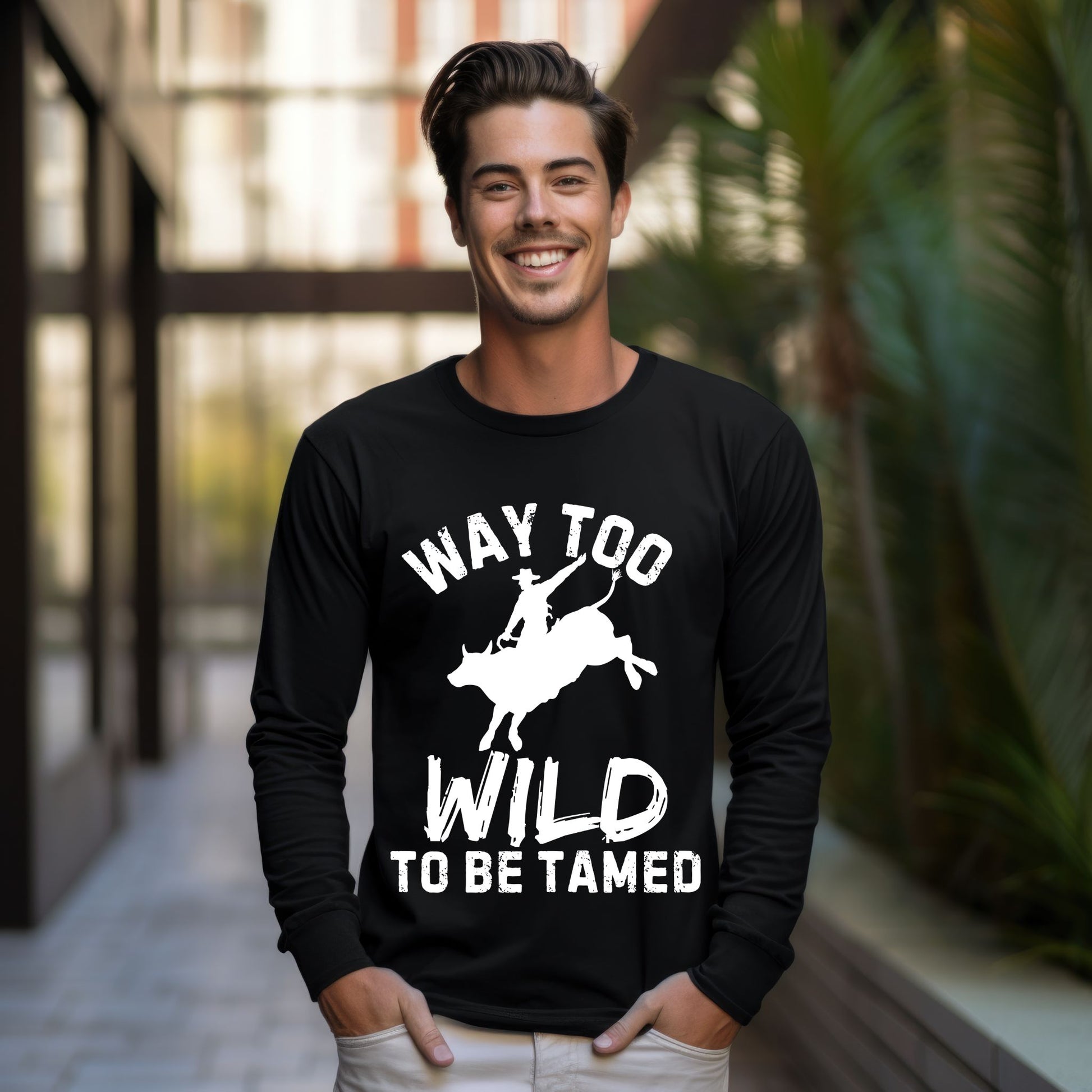 Way Too Wild To Be Tamed Rodeo-Inspired T-Shirt Western Cowboy Graphic Tee Long Sleeve Tee