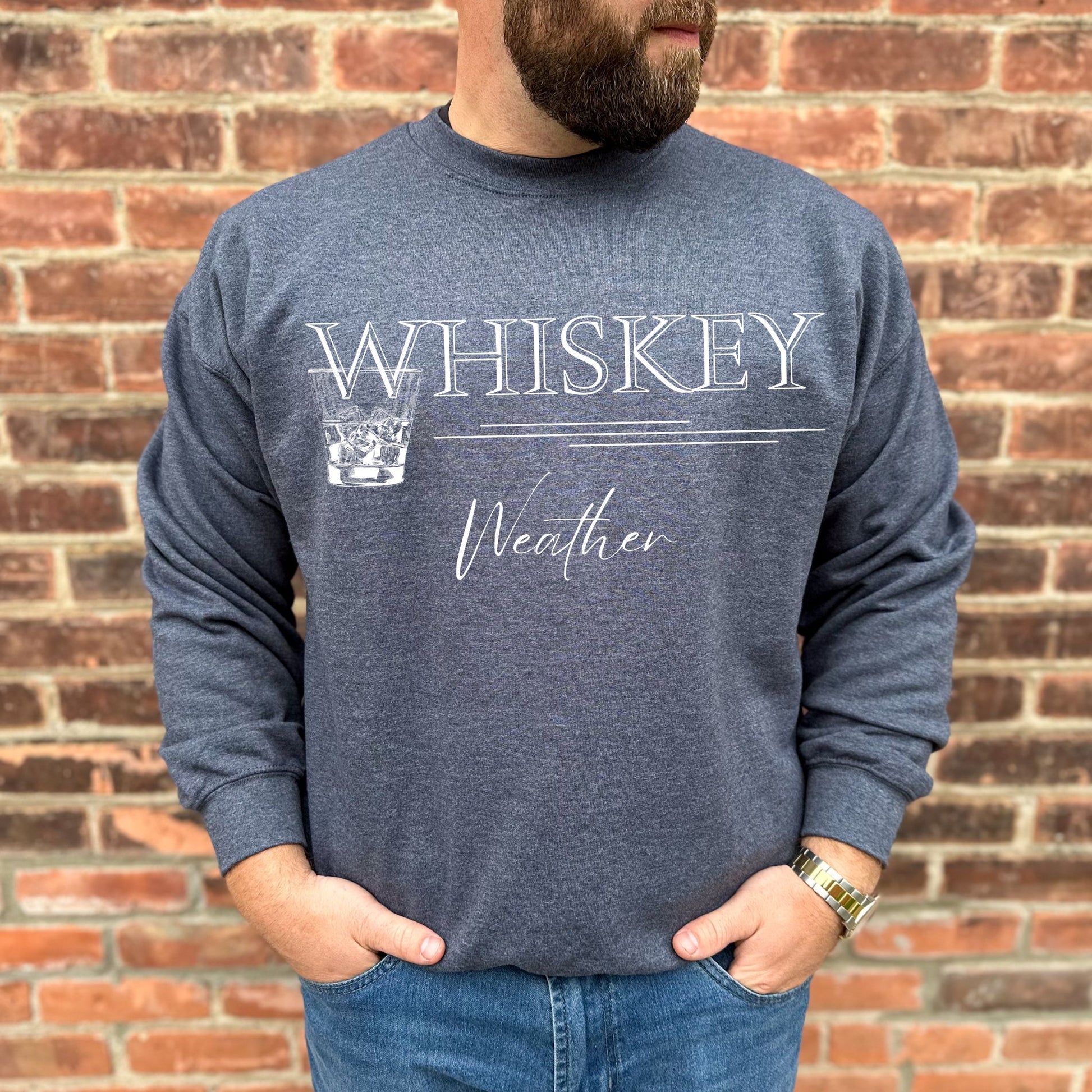 Embrace the chill in the air and the warmth in your glass with our cozy "Whiskey Weather" sweatshirt - the ultimate apparel for those who love to toast to the cooler days with a smooth, amber-hued drink in hand. This trendy sweatshirt isn't just a piece of clothing; it's a statement for the bourbon aficionado, the weekend game day enthusiast, and anyone who enjoys the finer sips in life. Crafted with care, our sweatshirts are made from a premium blend of cotton and polyester, ensuring both comfort and durability. Soft to the touch and designed for a relaxed fit, it's the perfect companion for your next tailgate or casual night in with friends. The graphic is professionally printed with high-quality inks that stand the test of time, wash after wash. Available in a range of sizes, this whiskey lover gift is unisex and fits true to size, making it an excellent gift for both him and her. To keep your "Whiskey Weather" sweatshirt looking its best, we recommend washing it inside out with like colors and laying it flat to dry. But what sets our "Whiskey Weather" sweatshirt apart is not just its comfort and style; it's the handcrafted touch that goes into every piece. As a small Etsy shop, we take pride in our attention to detail and commitment to quality. It's not just a drinking shirt; it's a piece of wearable art that resonates with the authenticity and creativity that Etsy is known for. Whether you're shopping for yourself or searching for the perfect bourbon lover gift, our "Whiskey Weather" sweatshirt is sure to impress. It's not just a trendy sweatshirt